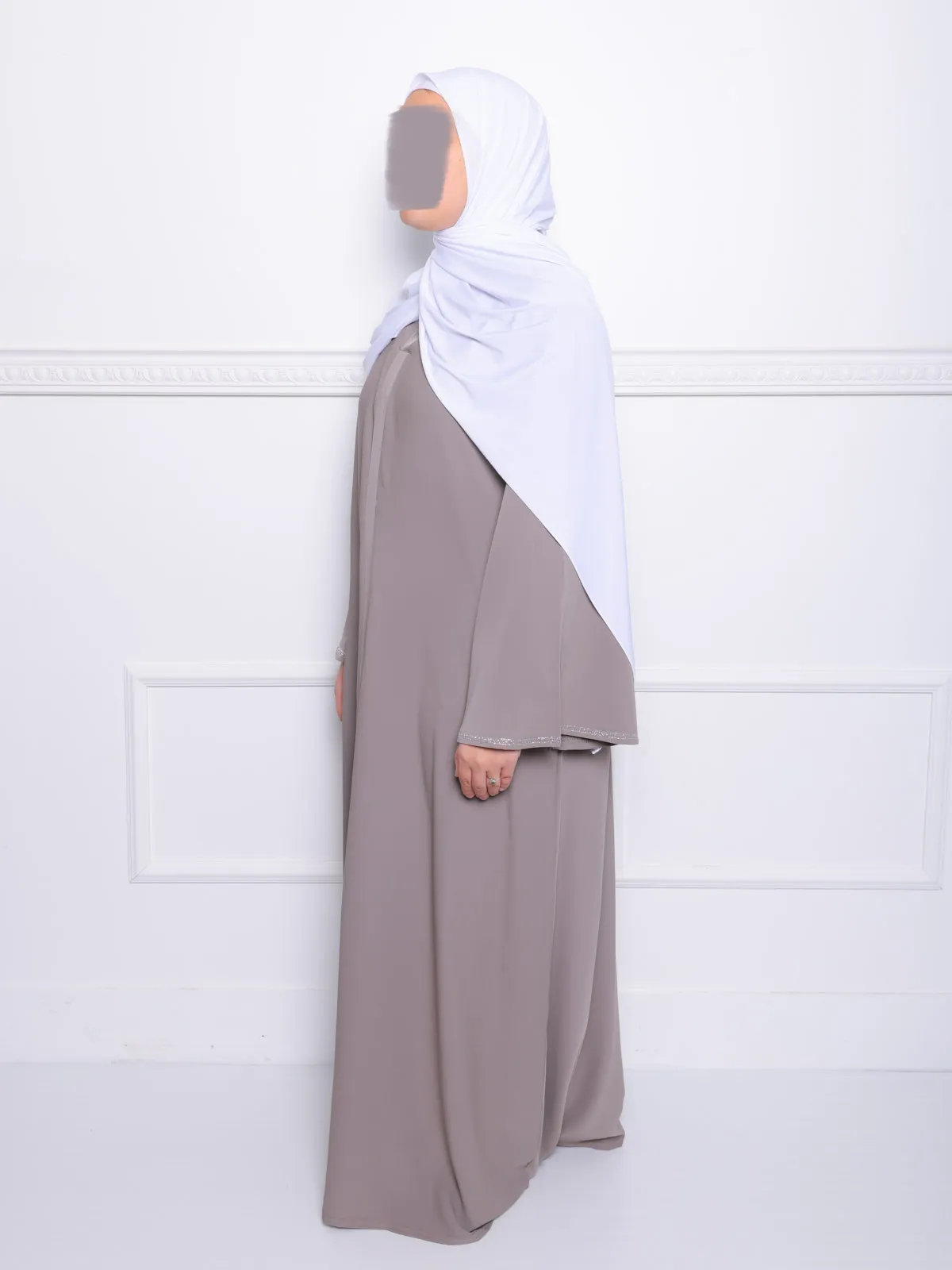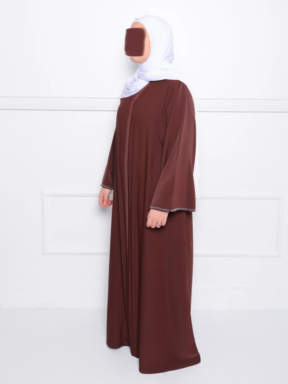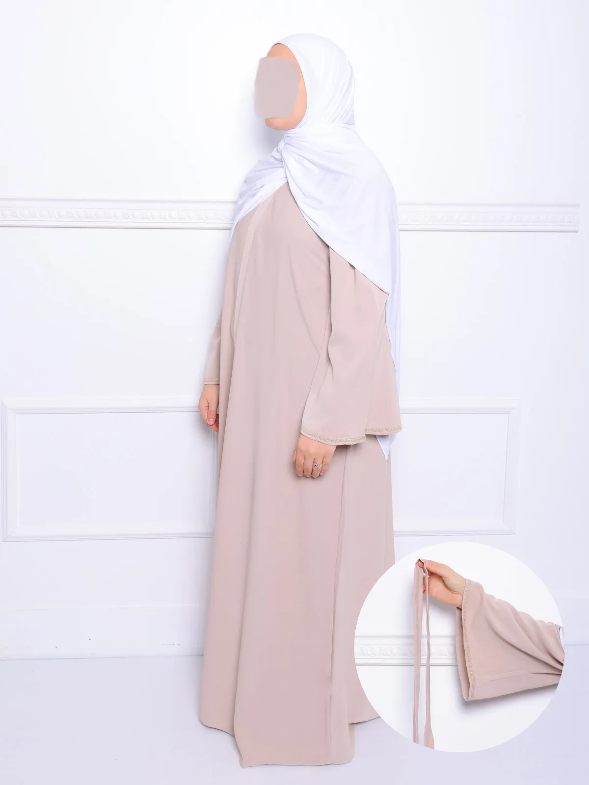 Découvrez notre Abaya avec ceinture et Liseret aux manches en soie de Médine, munie d’un ceinture assorti à le tenue. Simplifiant ainsi le processus d’habillage pour les femmes musulmanes désireuses d’être tendance. En tant que femmes, il peut être difficile de trouver rapidement une tenue adaptée au quotidien. Ainsi, avec cette Abaya avec ceinture la vie est facilité. Tenue chic et décontractée en toute circostance.