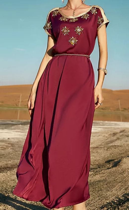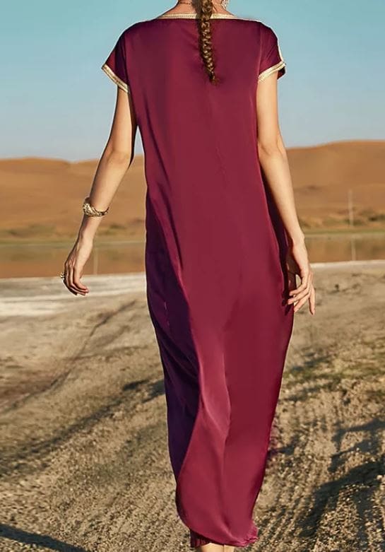 Avec sa jolie couleur bordeaux, l’Abaya Badra est un très beau vêtement.