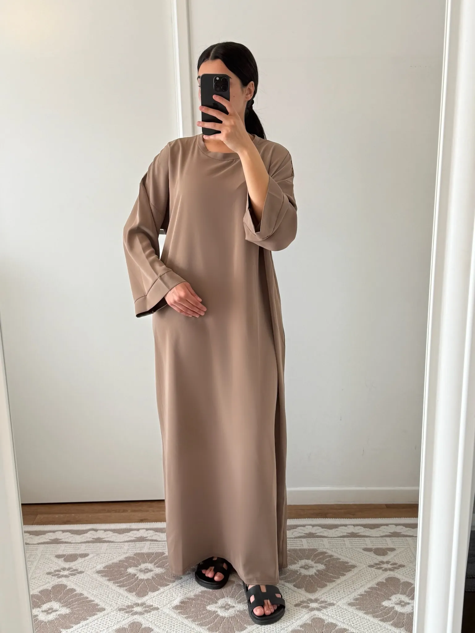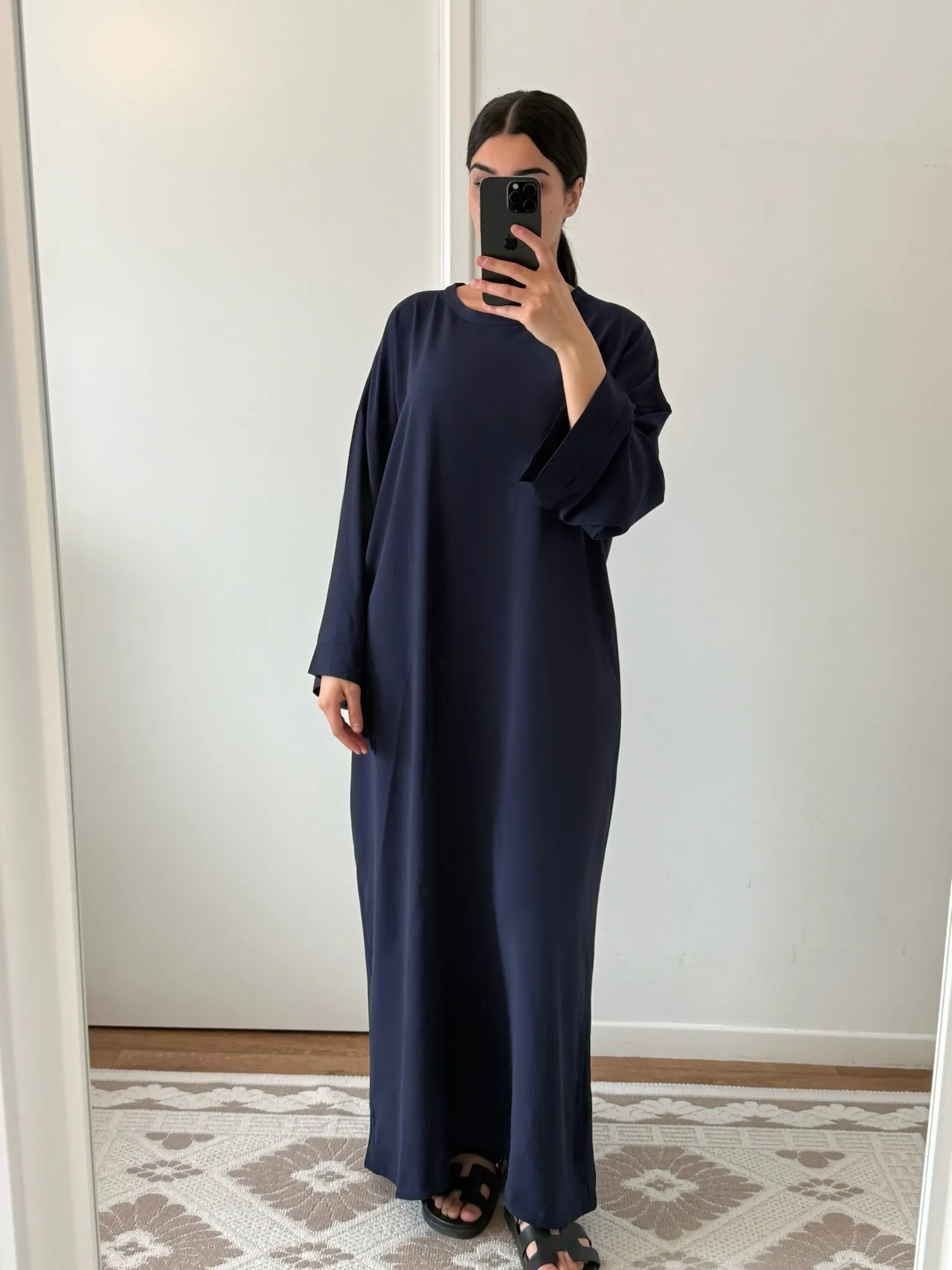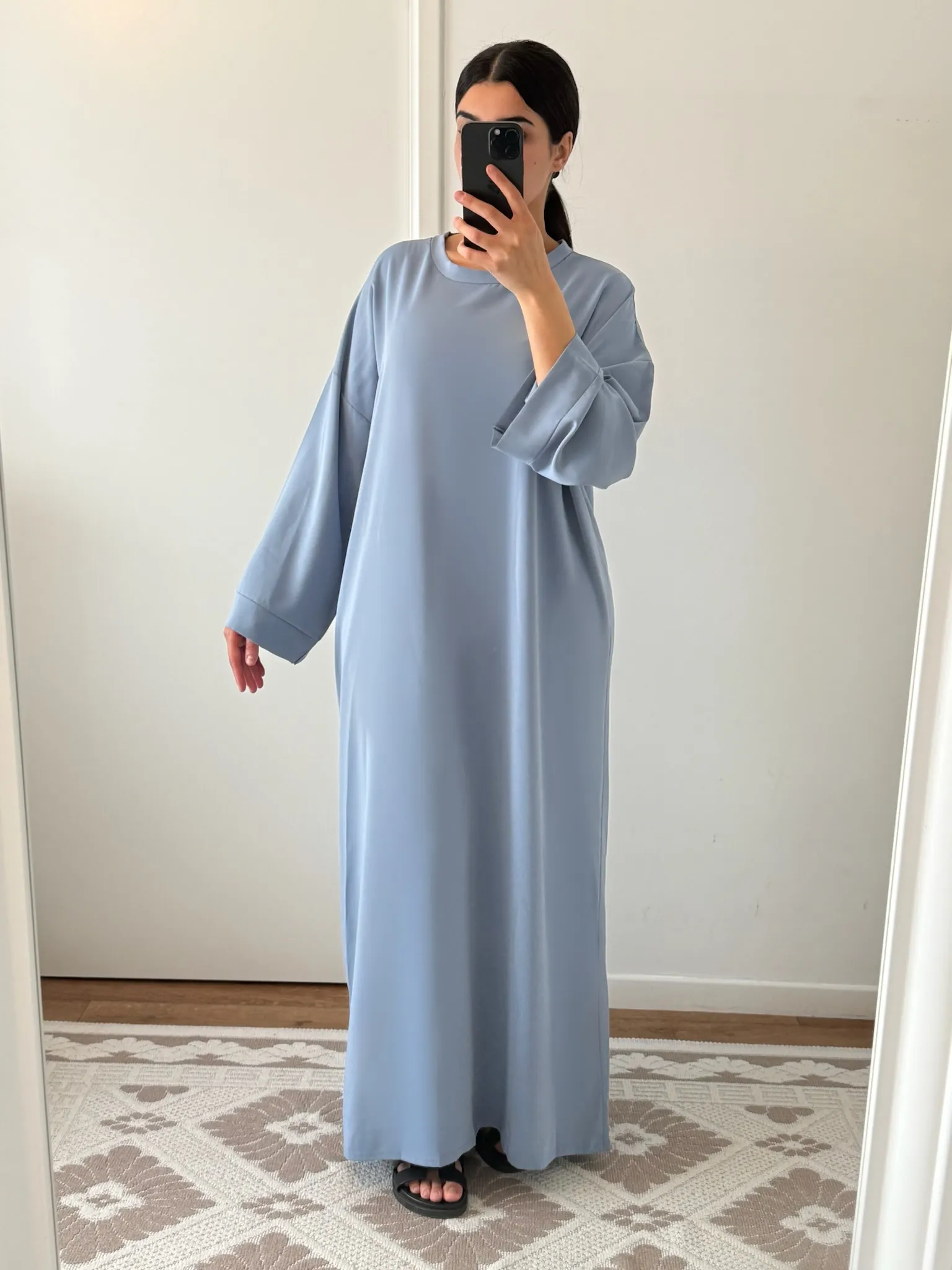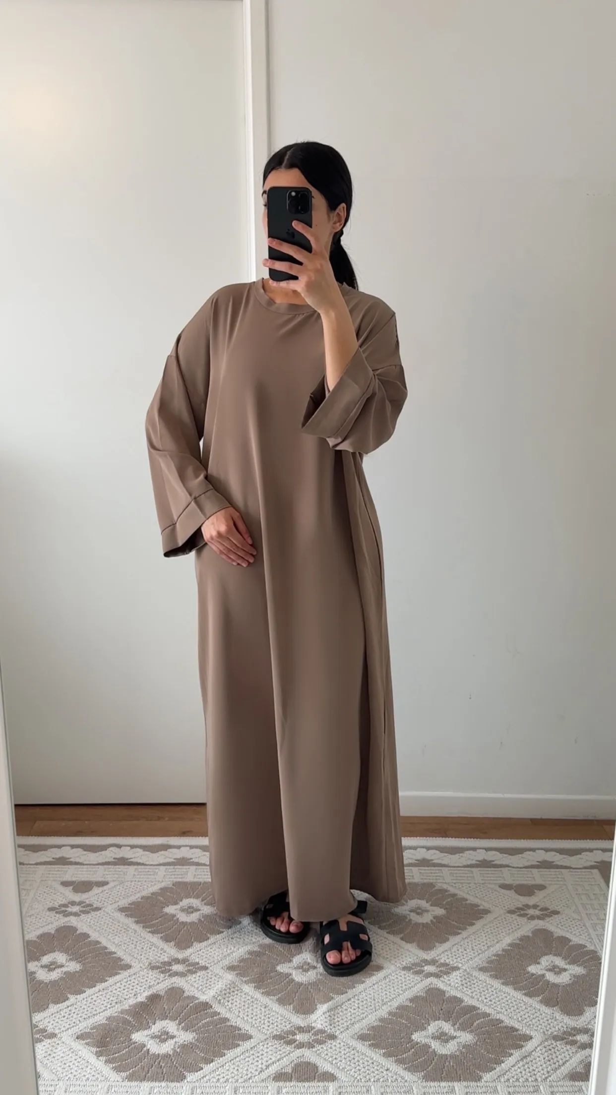 ABAYA ANTI-CRISE = ABAYA PAS CHER. Meilleur rapport qualité prix possible. Cette abaya est un choix parfait pour les femmes cherchant une tenue simple et classique. Fabriquée à partir de tissus de haute qualité, elle est douce et confortable à porter. Grâce à sa matière fluide, la retombée de l’abaya est top. Caractéristiques : Matière de fluide et confortable Longueur 140 cm La soeur sur les photo mesure 1,66 Taille unique convient du 36 au 44 Abaya ample et large Col rond