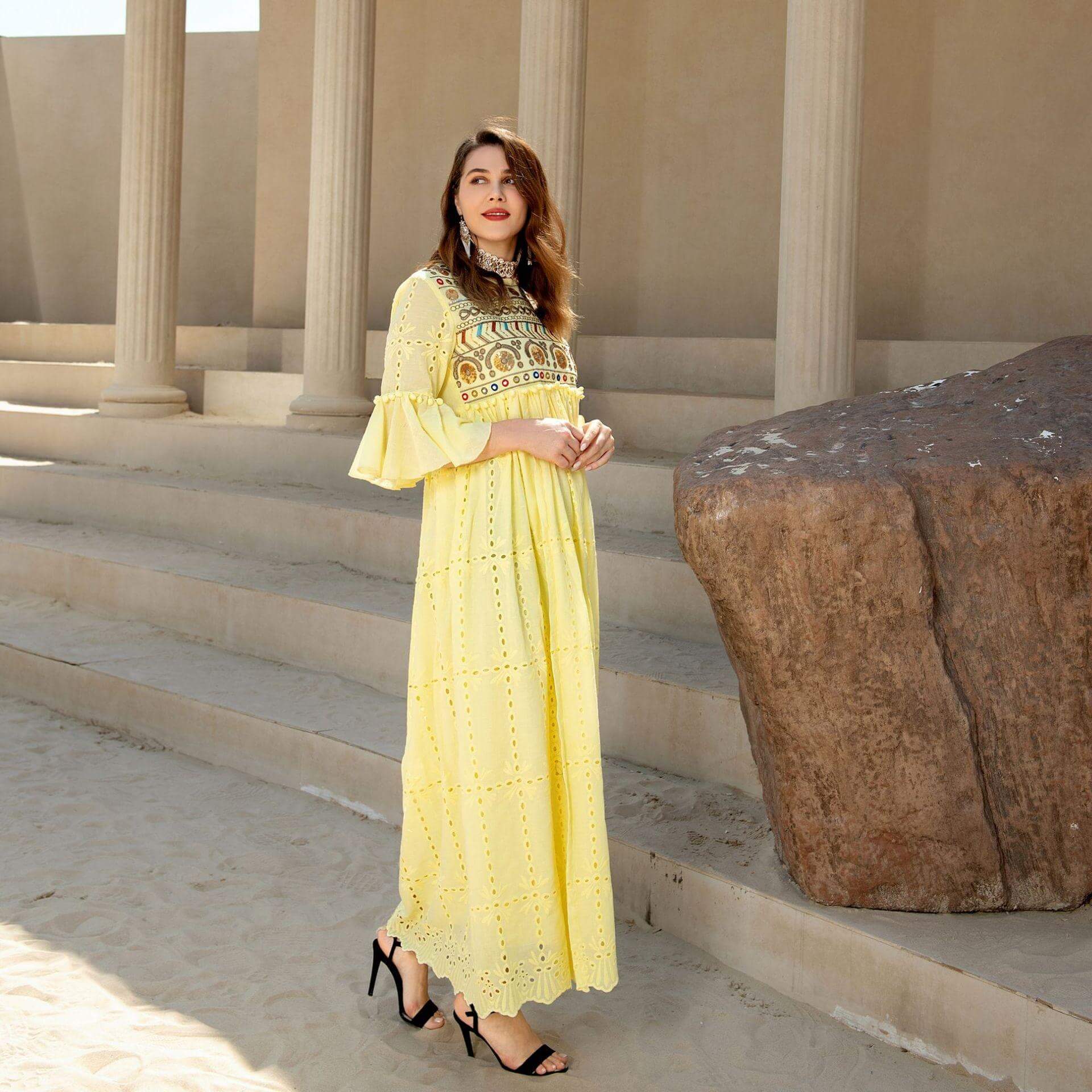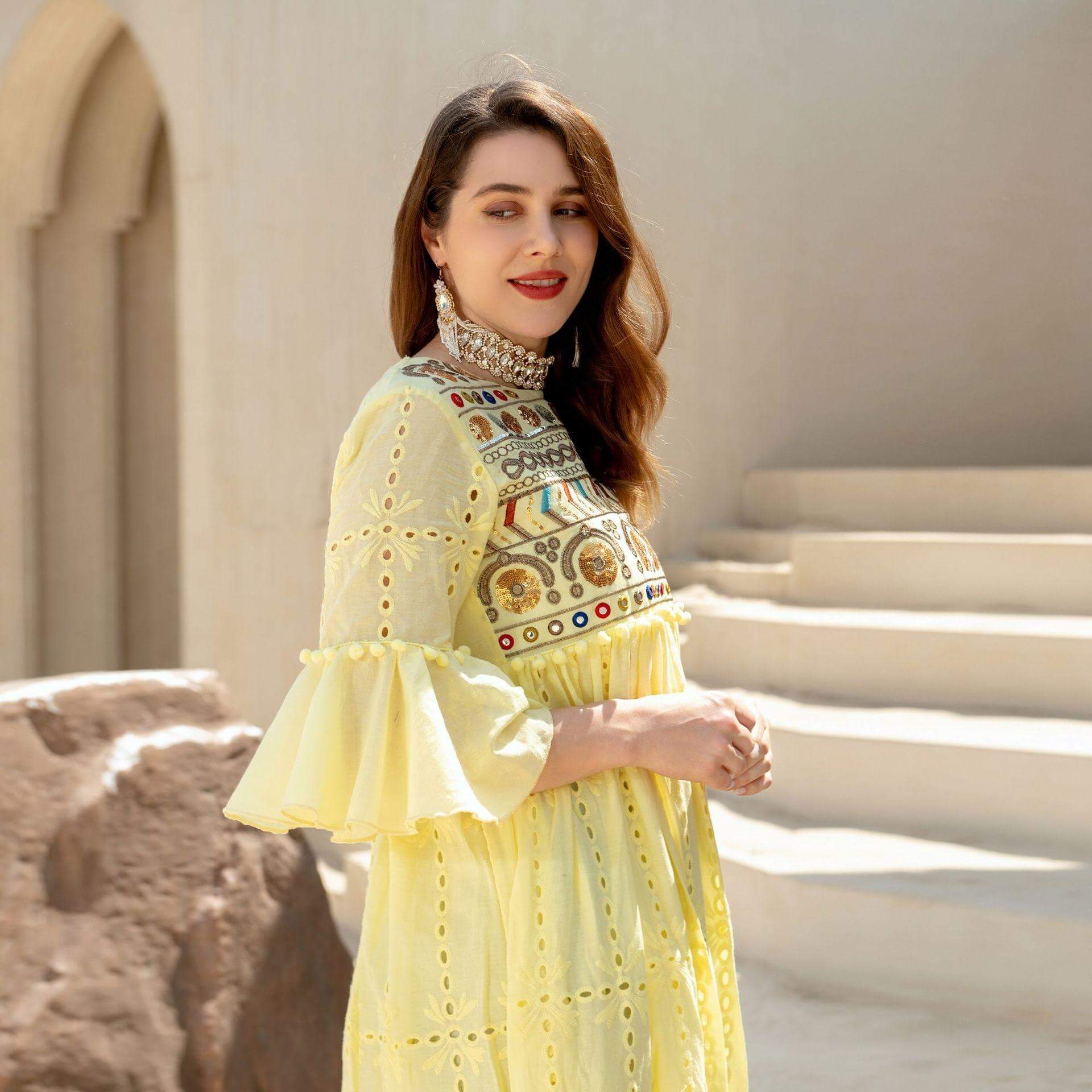 Cette robe arabe à l’allure unique est composée d’un coloris jaune et de coutures renforcées pour vous accompagner lors de vos sorties du quotidien !