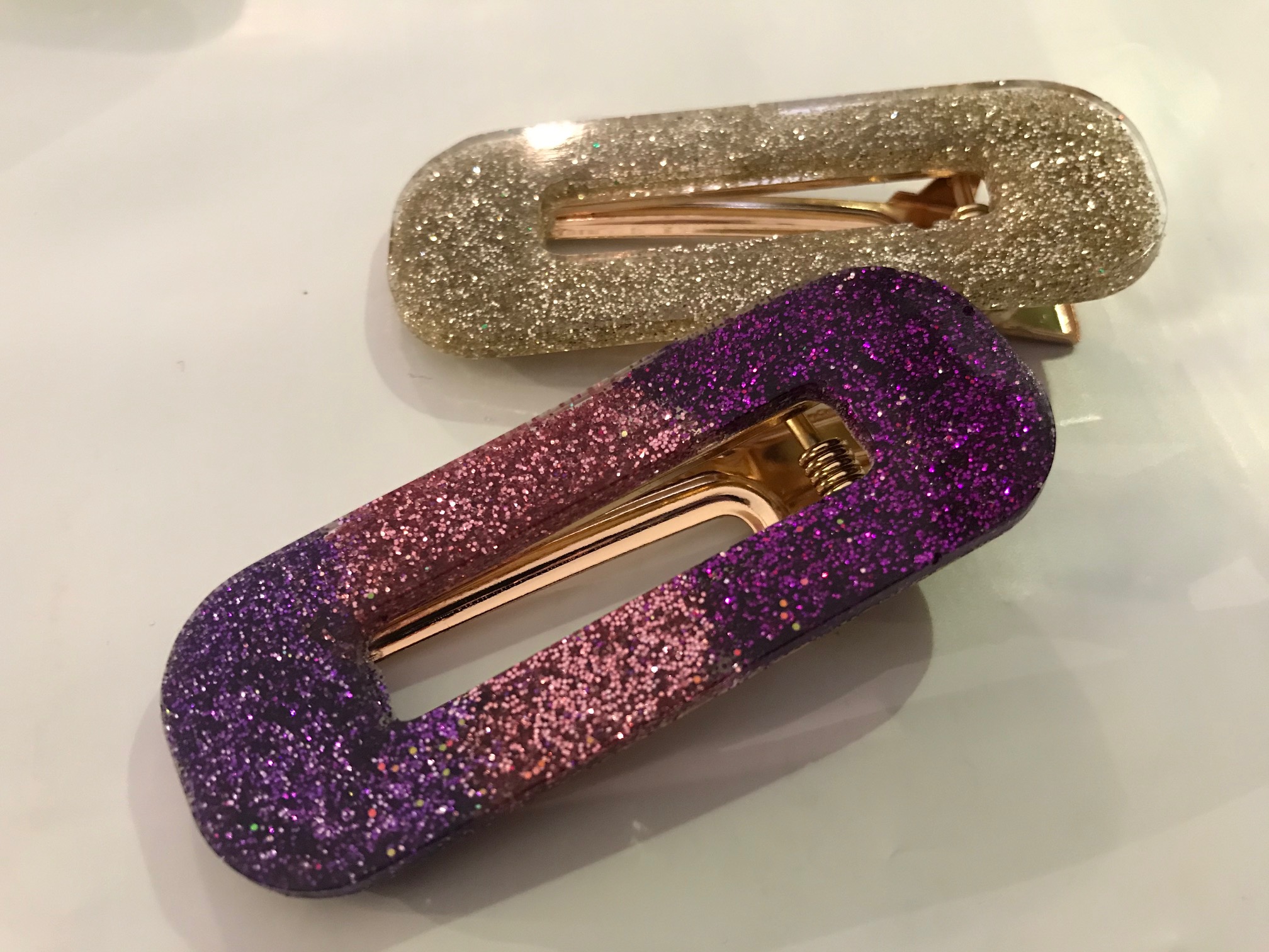 - Cette barrette élégante et colorée est faite à partir de résine de haute qualité et de paillettes brillantes.