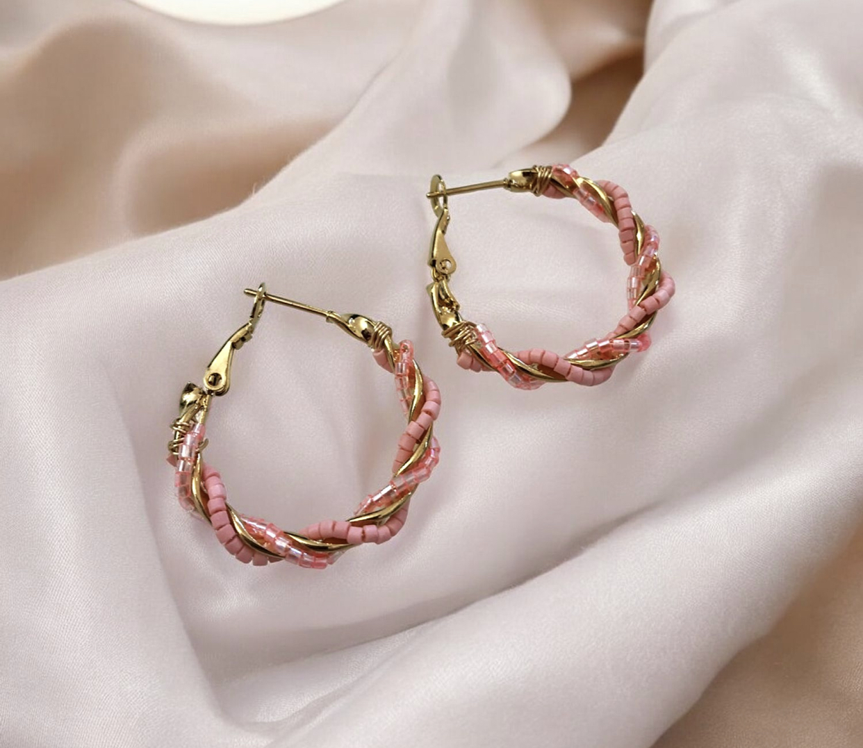Ces boucles d’oreilles créoles torsadées roses sont bien plus qu’un simple accessoire.