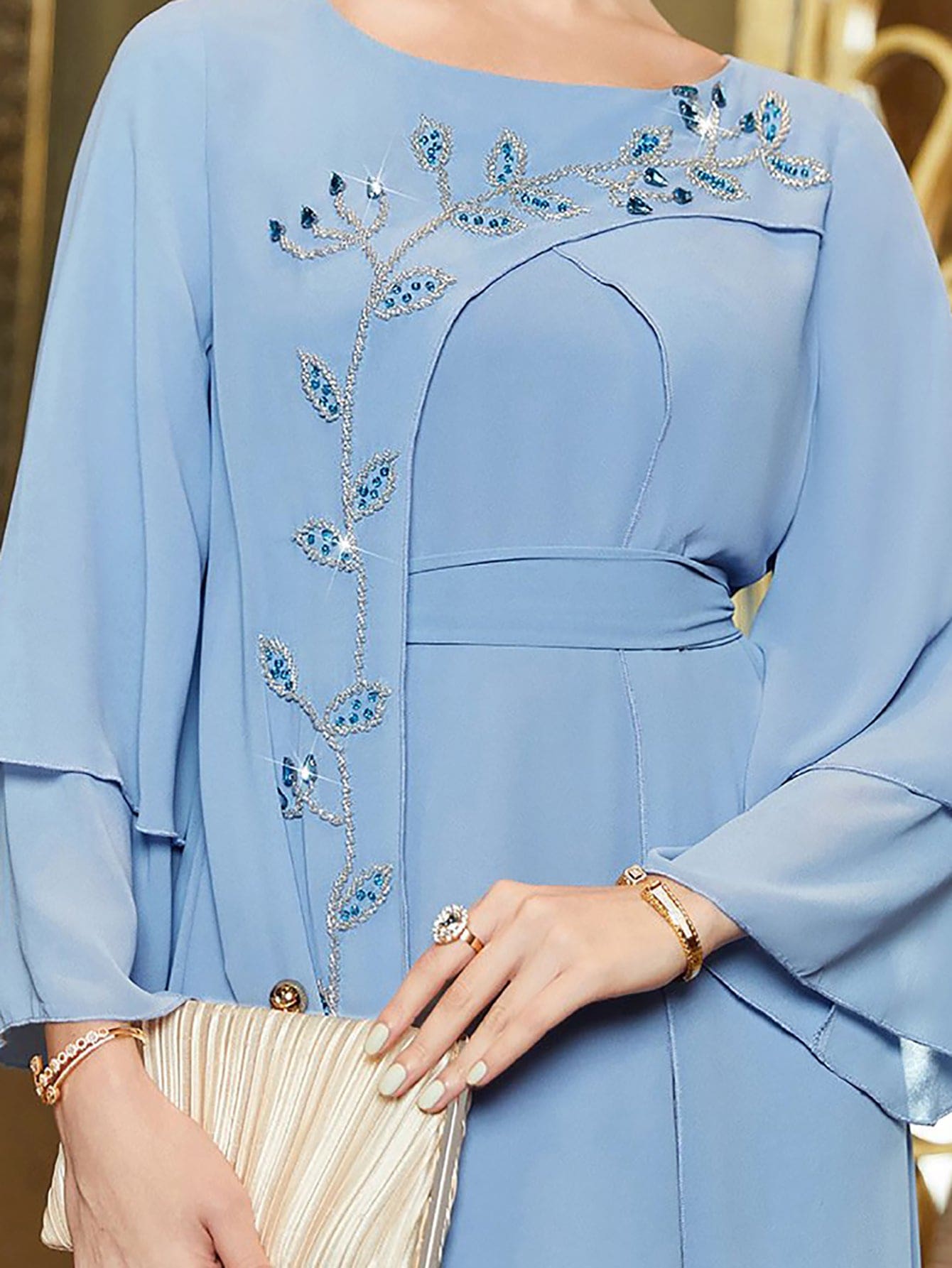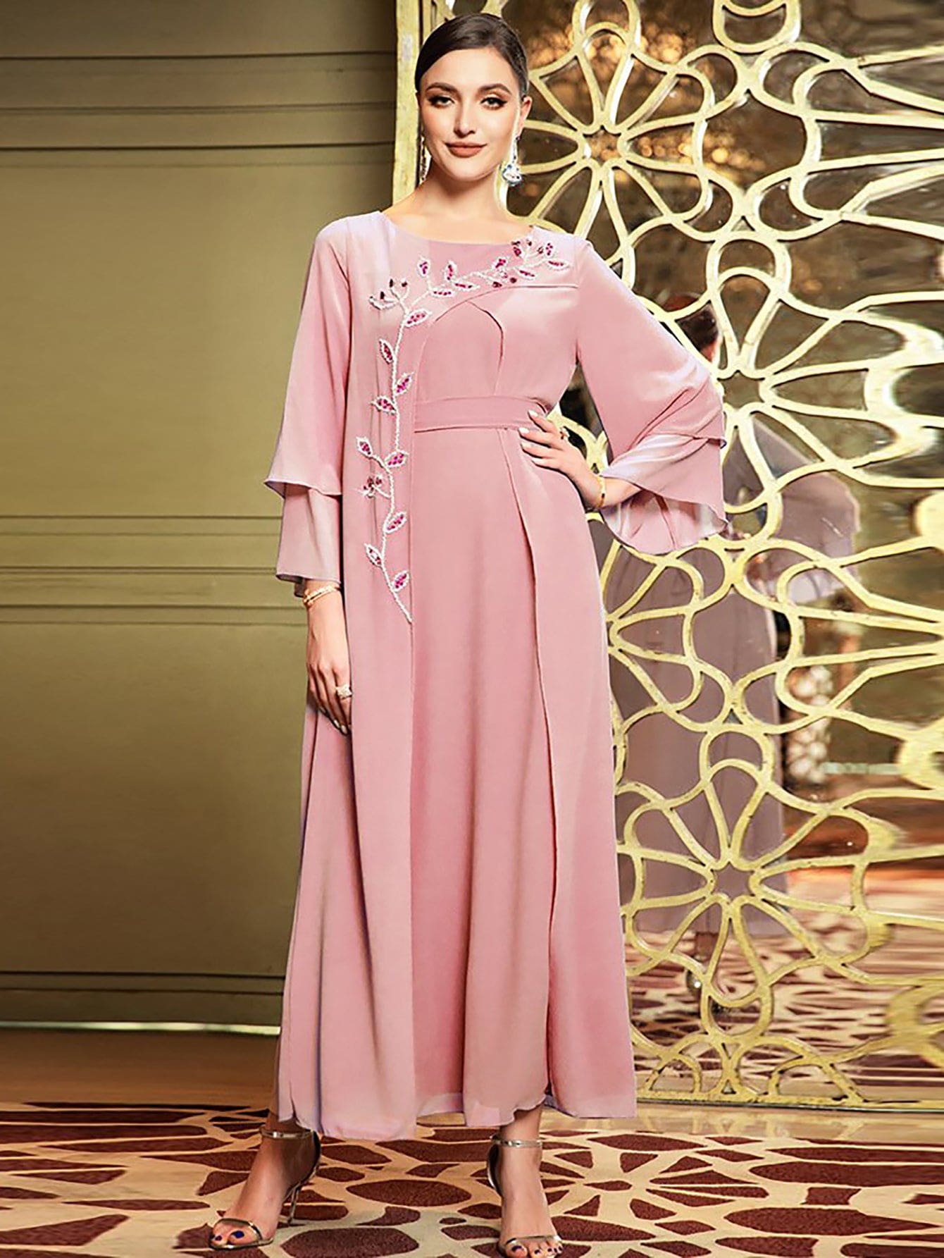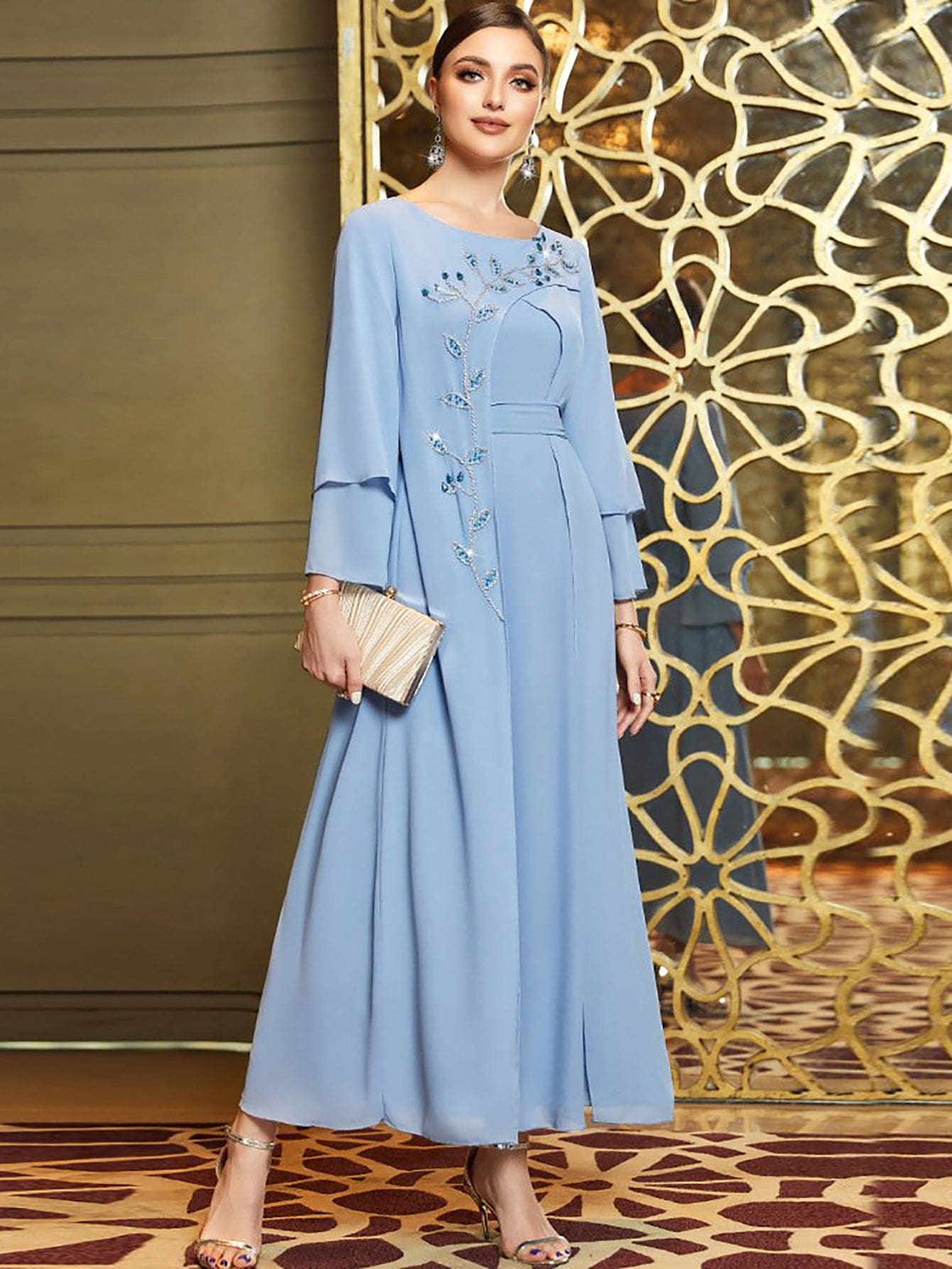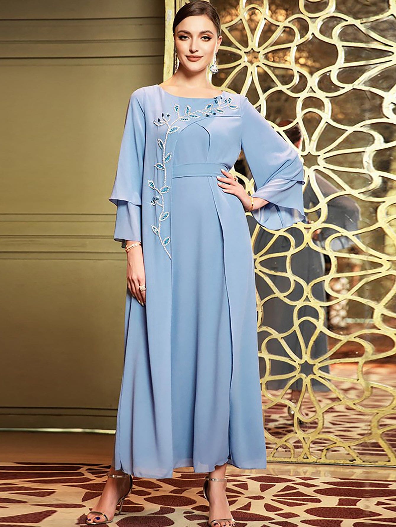 Caftan Couture Robe en mousseline avec strass