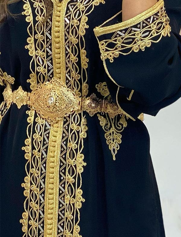 Caftan Marocain en Satin Noir avec Broderie