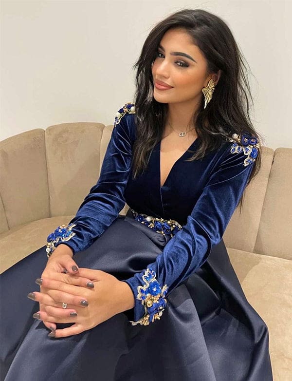 Broderie À Paillettes Bleu Caftan Femmes Robe Arabe