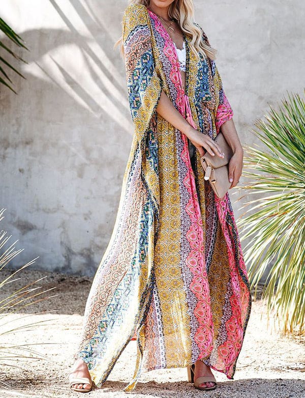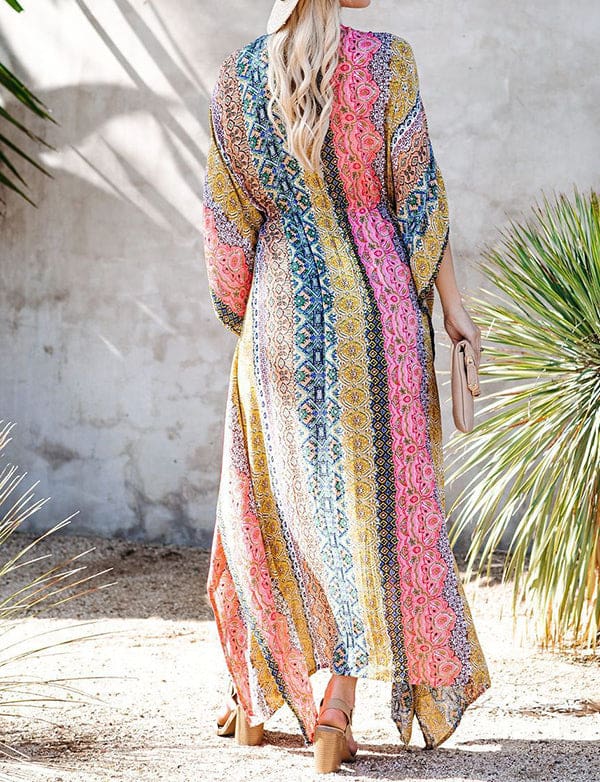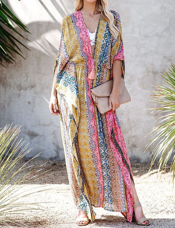 Abaya musulmane robe à manches longues brodée à col rond avec broderie dorée