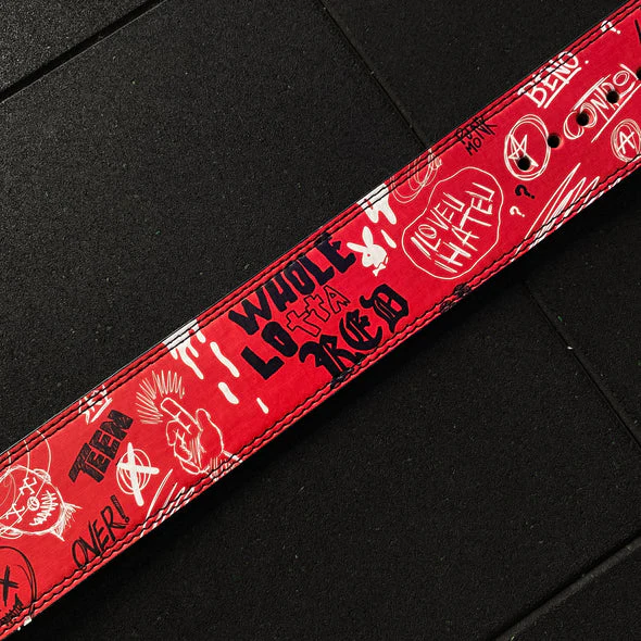 La Ceinture de Force « Whole Lotta Red » allie un design audacieux inspiré de l’album de Playboi Carti à un soutien lombaire de qualité pour optimiser vos performances lors de vos séances de musculation et de Powerlifting.