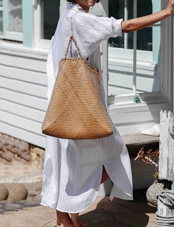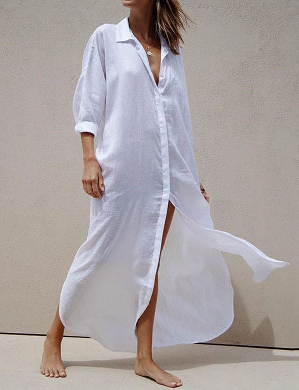 Chemisier à col en V profond, sexy et ample, à simple boutonnage