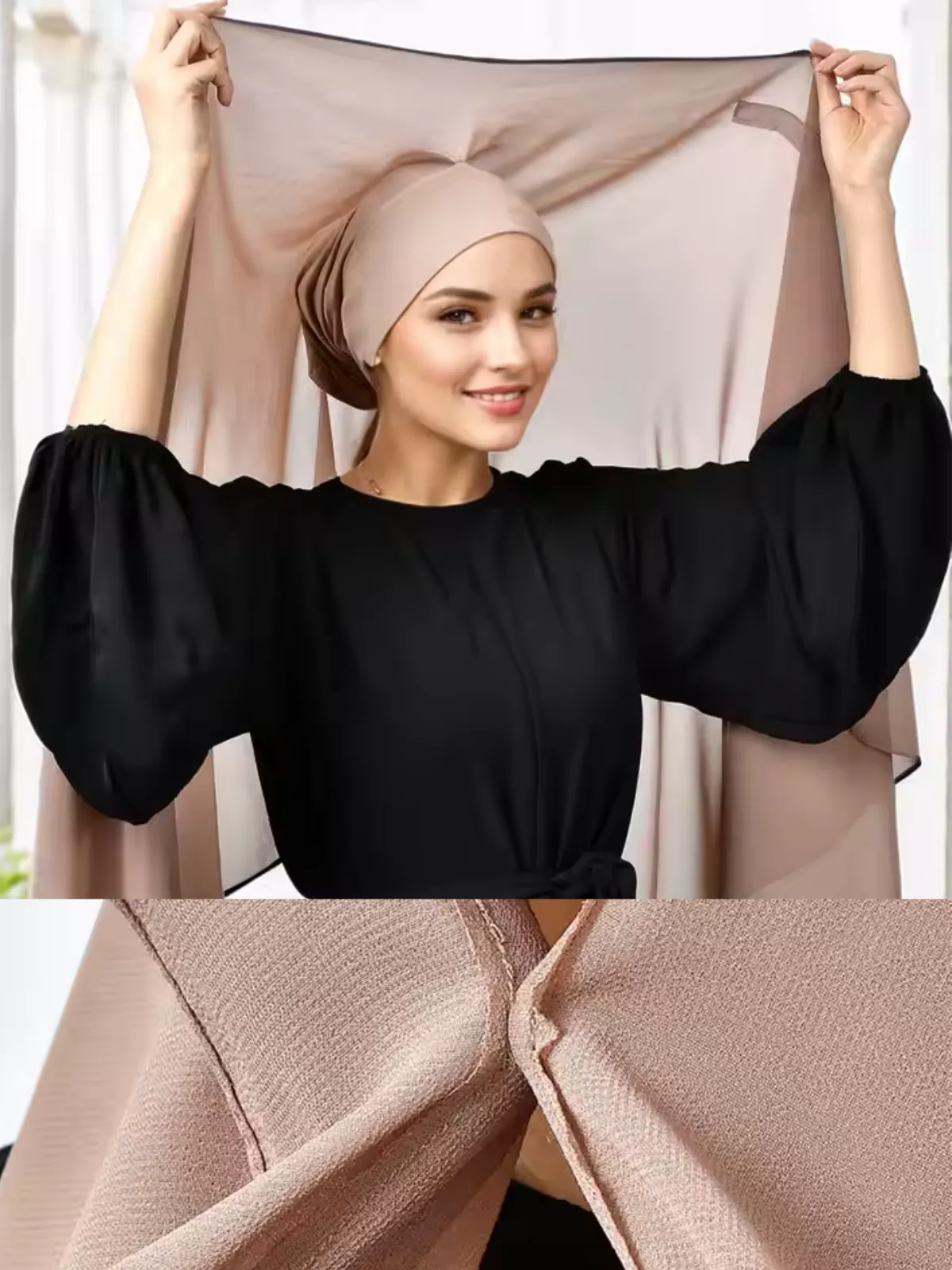 Hijab en mousseline non opaque bonnet intégré avec aimant coulissant