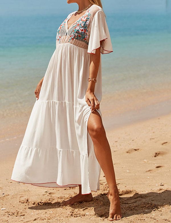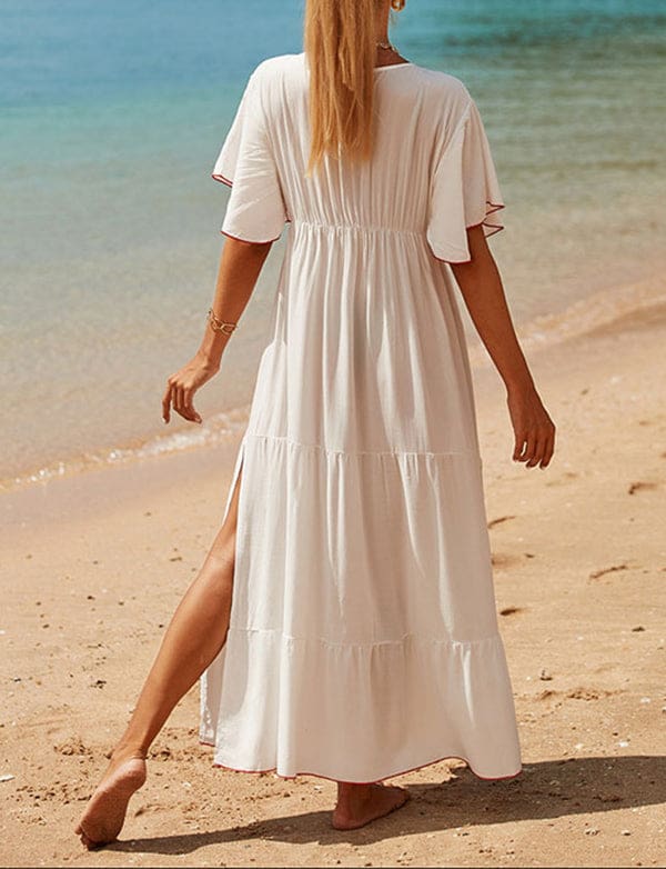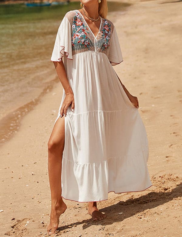 Abaya musulmane robe à manches longues brodée à col rond avec broderie dorée