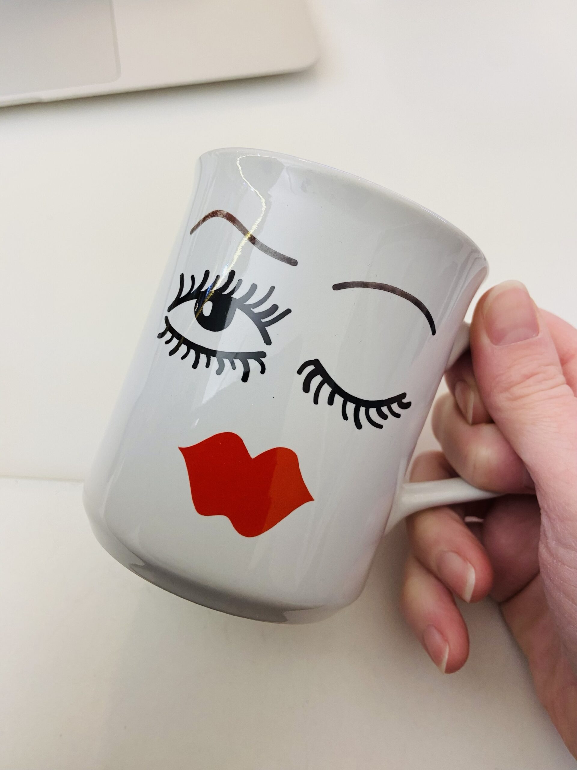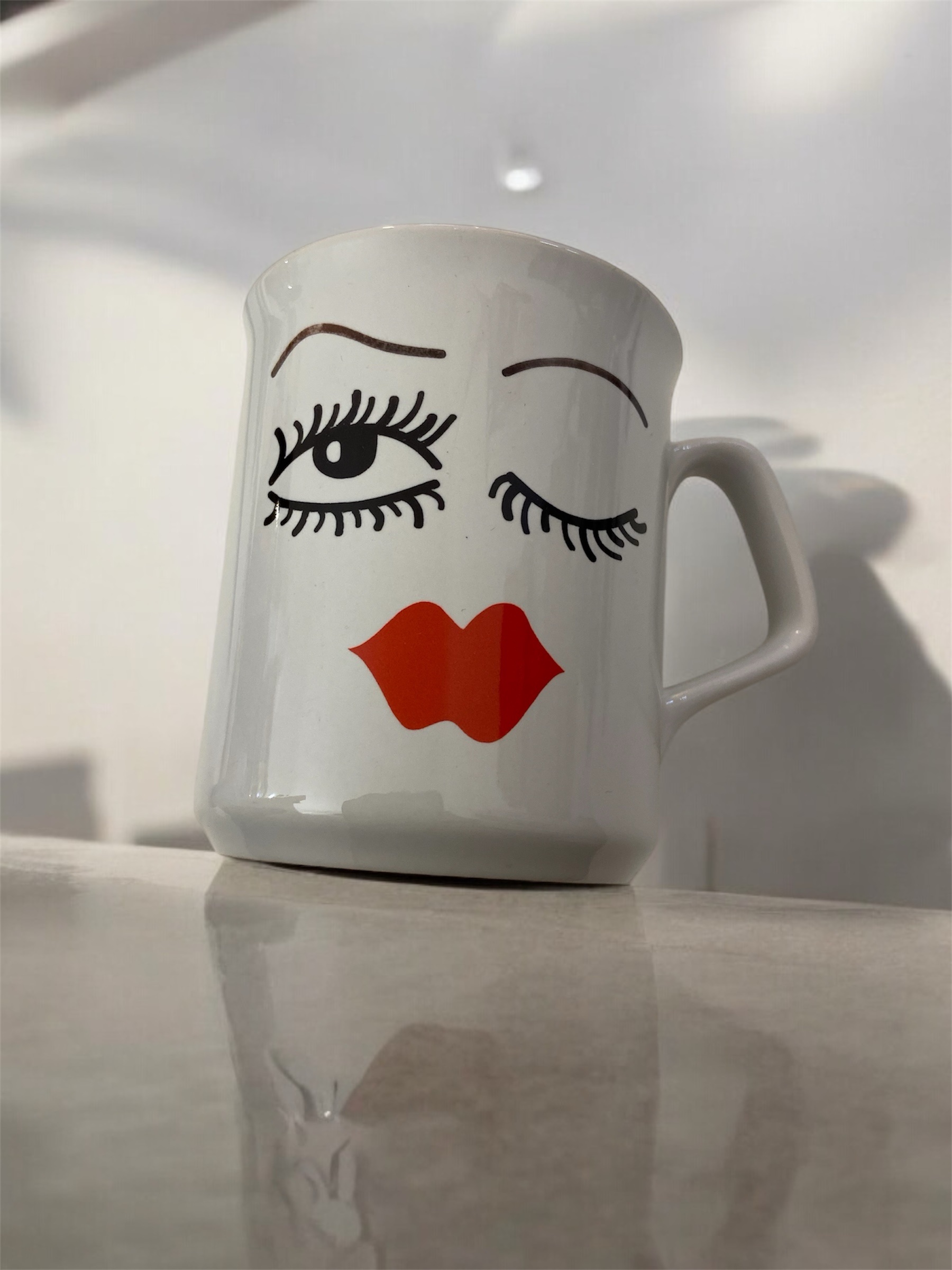 Ce mug a été imaginé et personnalisé entièrement dans notre atelier. Le clin d’œil et la bouche rouge symbolisent une personnalité audacieuse et élégante, parfaite pour les amateurs de design unique. Que ce soit pour savourer votre café du matin, votre thé de l’après-midi ou un chocolat chaud réconfortant, ce mug vous accompagnera avec style.