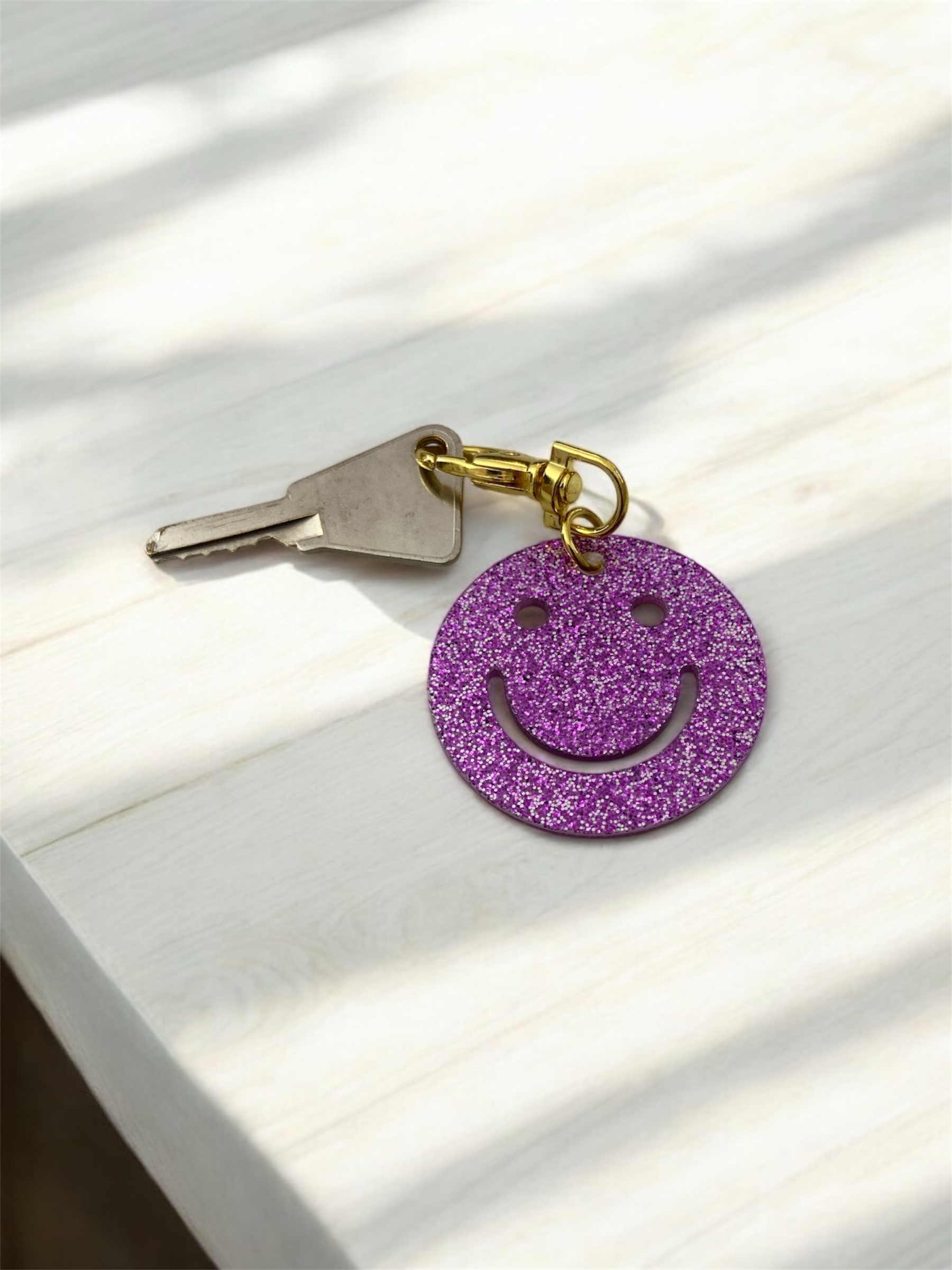 Porte-clés smile : violet pailleté : l’Accessoire trop cute qui fait briller ton quotidien !