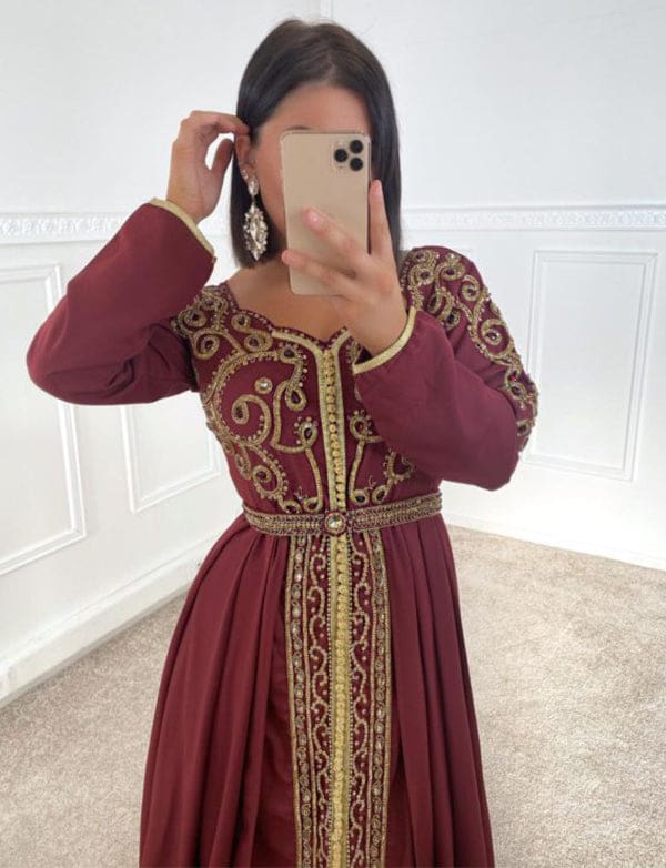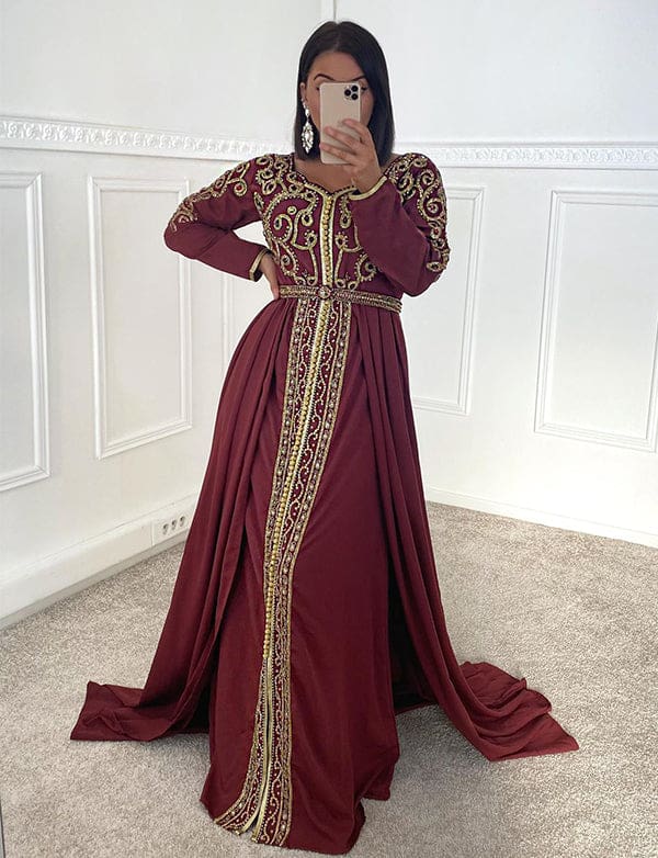 Caftan Couture Robe en mousseline avec strass