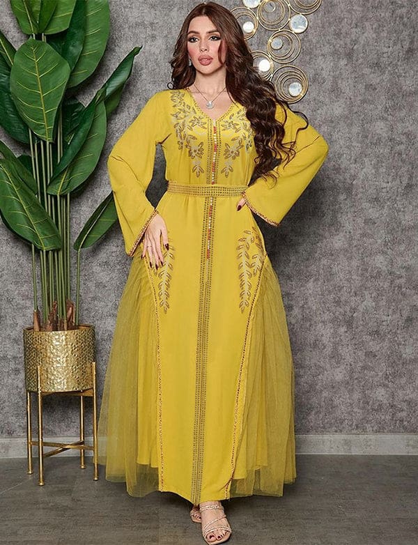 Robe caftan perlée de diamants