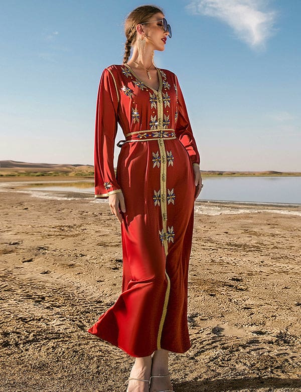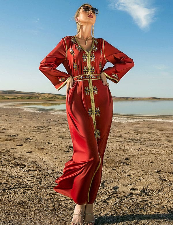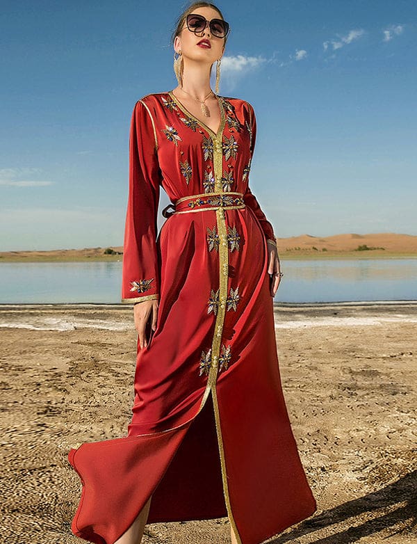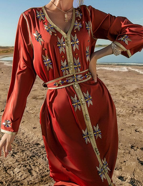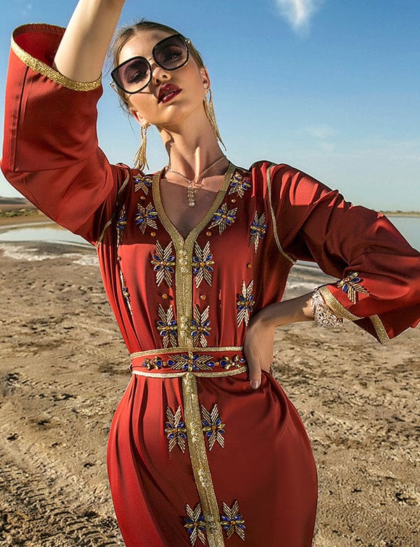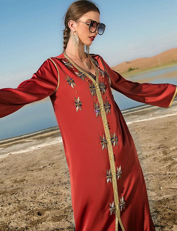 Robe Caftan Vermillon en Strass
