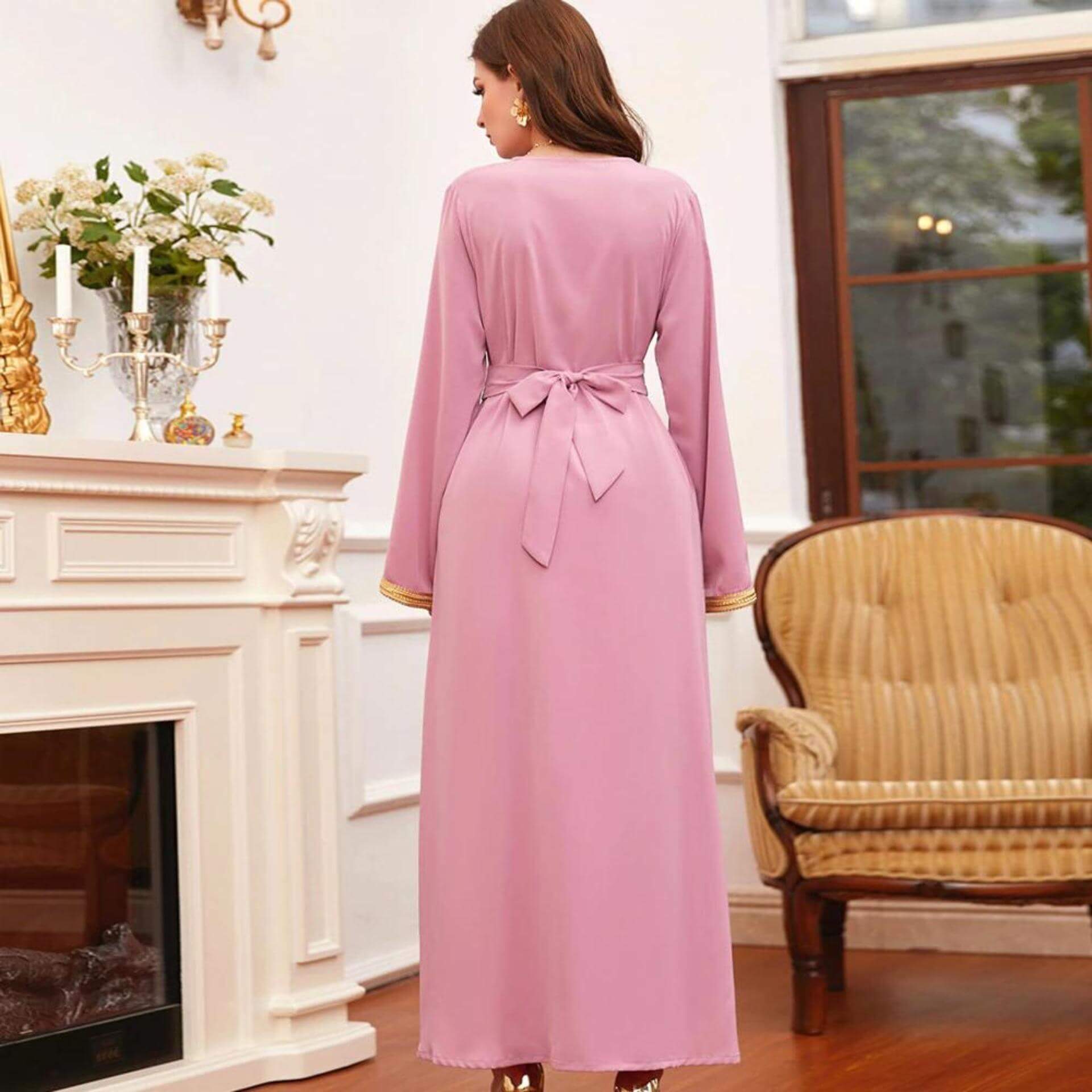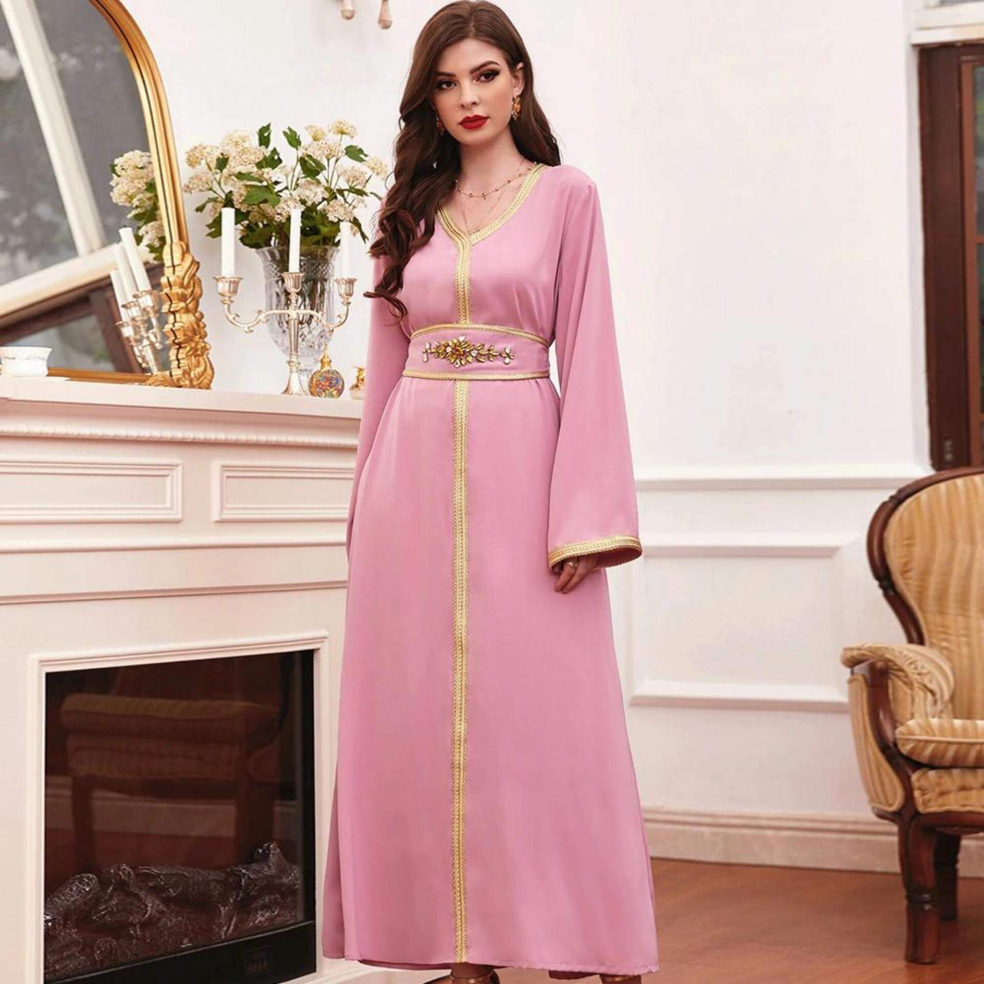 Avec son coloris rose et ses broderies dorées, cette tenue est parfaite pour être à la pointe de la modernité et les occasions importantes !