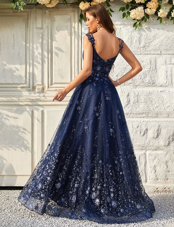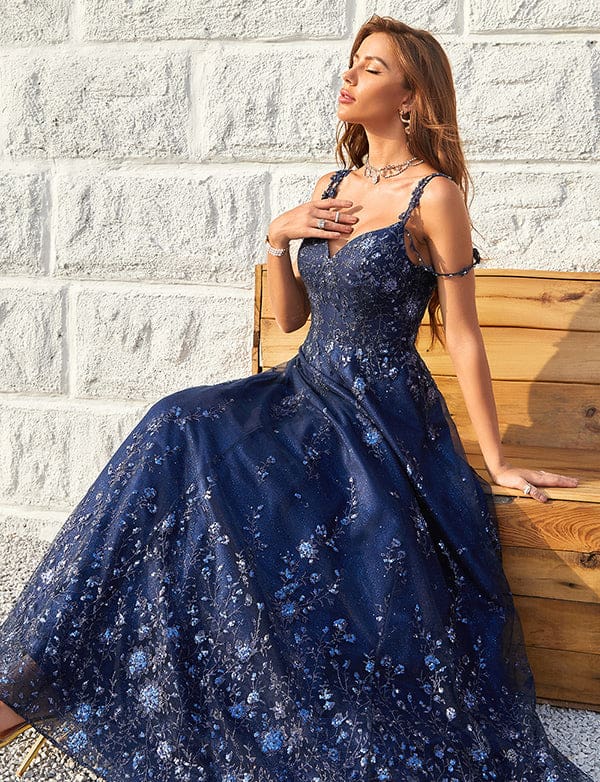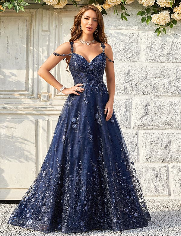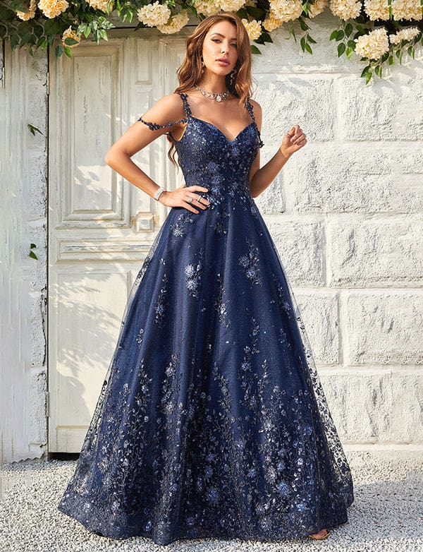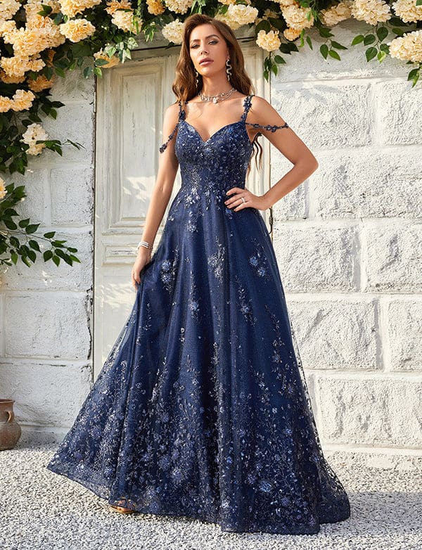 Robe De Bal à Bretelles Spaghetti Et Paillettes Marine