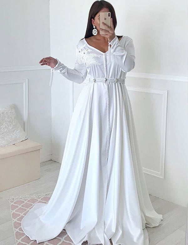 Broderie à paillettes Blanc Caftan Femmes Robe Arabe