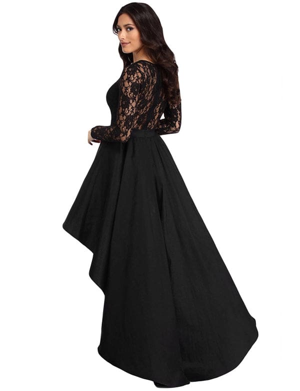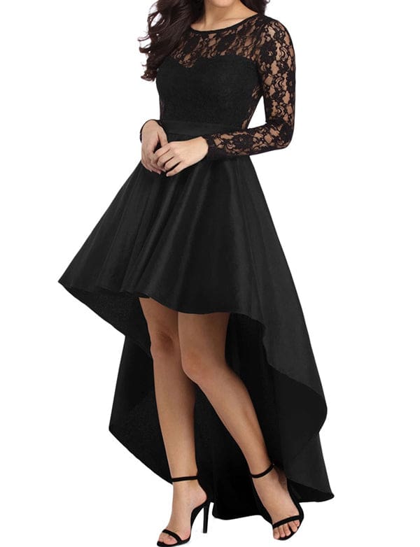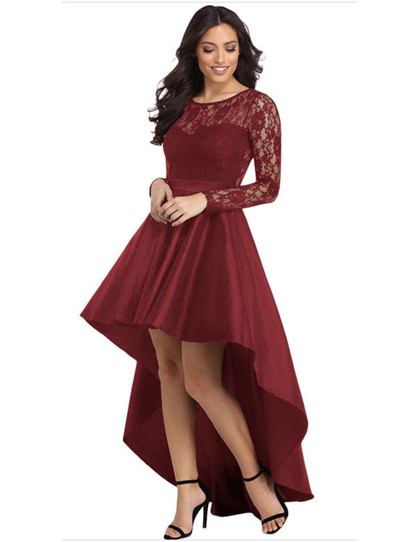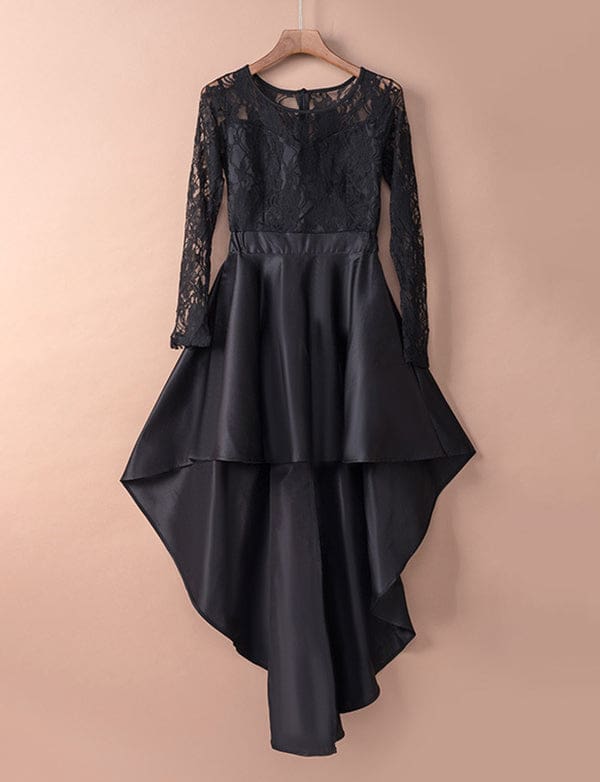 Robe de Soirée Asymétrique en Dentelle et Satin à Manches Longues