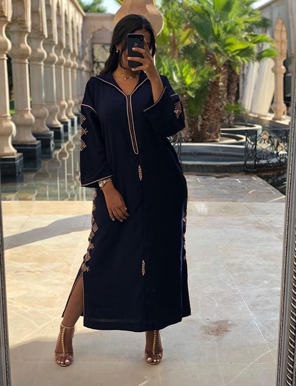 Broderie À Paillettes Orange Caftan Femmes Robe Arabe