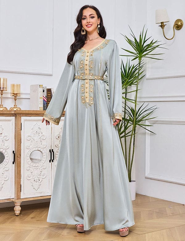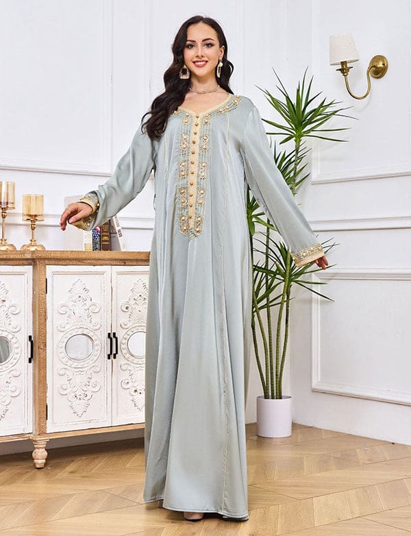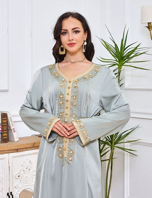 Robe longue abaya brodée et incrustée de diamants