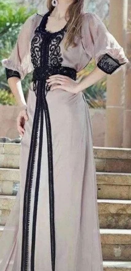 Pour déterminer la tenue à porter, vous devez d’abord savoir à quelle soirée ou fête vous allez assister. Pour être au top, vous devez choisir la tenue idéale : mariage, soirée, fête entre amis ou collègue, ouvrez bien vos yeux pour cette magnifique robe. Il s’agit de la robe marocaine Djenna chez Caftan Yasmina. Fabriquée avec la matière mousseline, elle est vraiment douce au toucher alors, imaginez-vous à l’intérieur. La couleur évoque de la modestie : un peu crémeux. Au niveau de la taille se conjugue des motifs brodés qui ressemblent à une ceinture. Les motifs ne s’arrêtent pas au niveau de la taille, il en existe au niveau des manches et le col. Ces motifs sont de couleur noire, très jolie avec une paire de boucles d’oreilles claires.