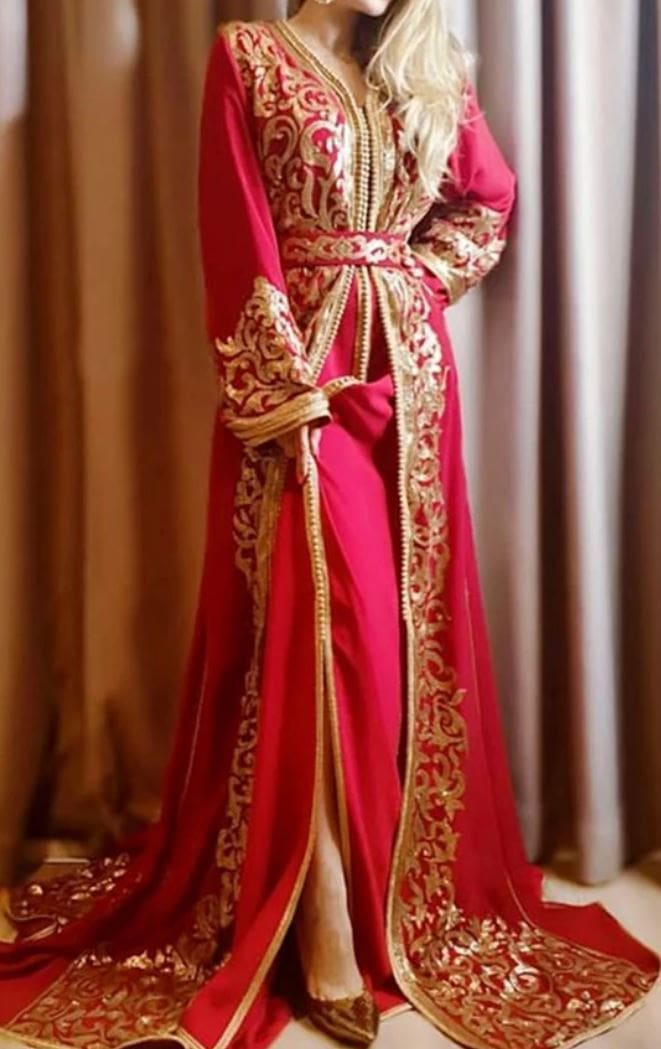 Vous allez à une soirée spéciale ou un évènement important et vous ne savez pas quoi porter ? Offrez la Robe Orientale Inaia, puisqu’elle offre une élégance et un confort grâce à son style maxi avec manches longues. De plus, avec sa couleur rouge décoré de doré et aussi avec sa ceinture intégrée, la robe en satin suivra facilement les courbes de votre corps.