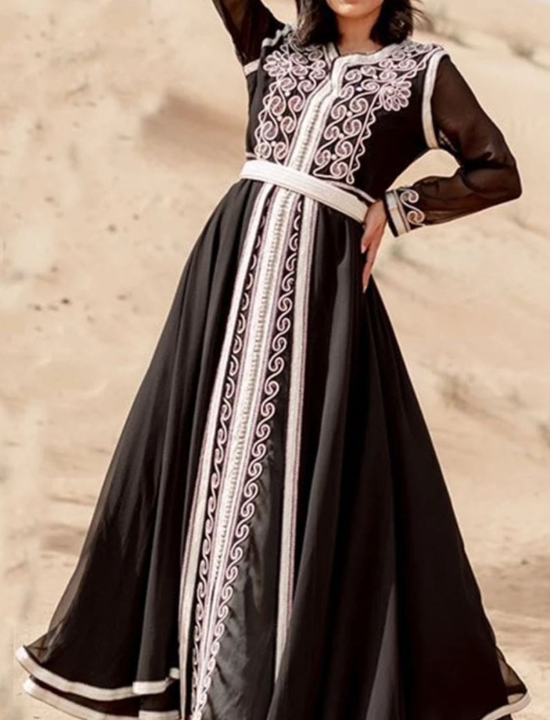 Vous êtes une femme qui aime le style simple, mais à la fois classe ? Voici la robe qui vous permet d’allier ces deux caractères : La Robe Orientale Medina. Une belle robe de couleur noire et faite en velours, elle vous permet d’être élégante dans une tenue simple, mais stylée. Les décors de la robe en blancs et les manches longues, vous offrent le confort t l’originalité.