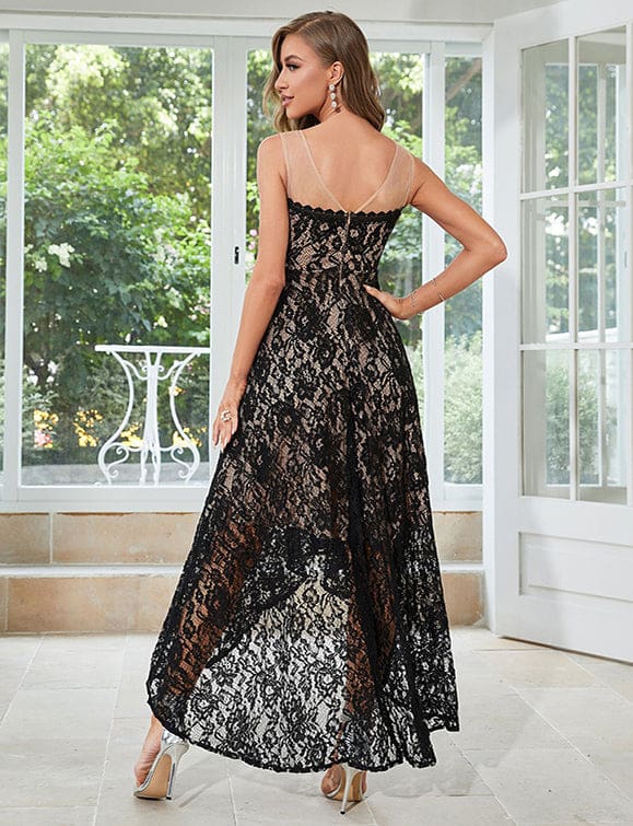 Robe sans manches en dentelle noire au tempérament élégant