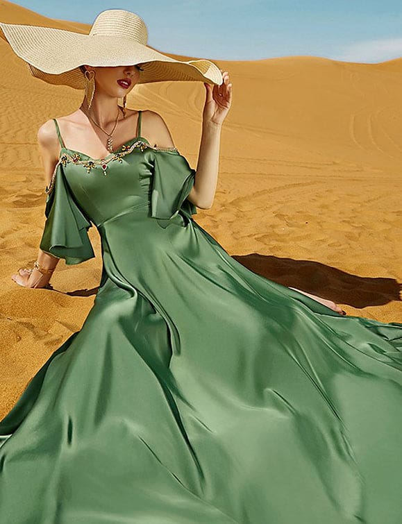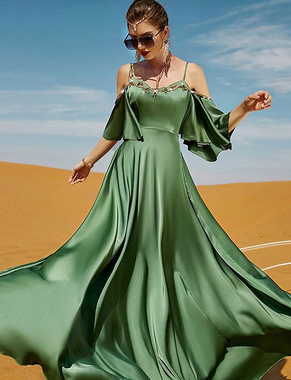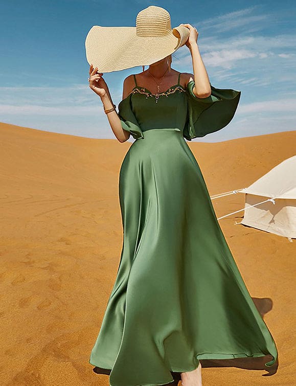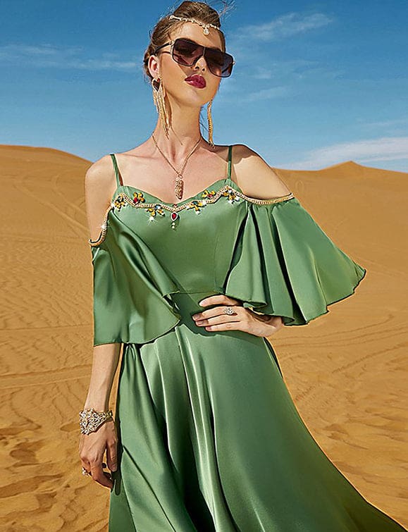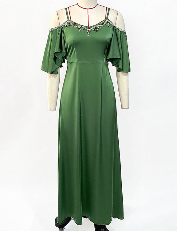 Robe sexy à dos nu en diamant cousu à la main, de couleur verte