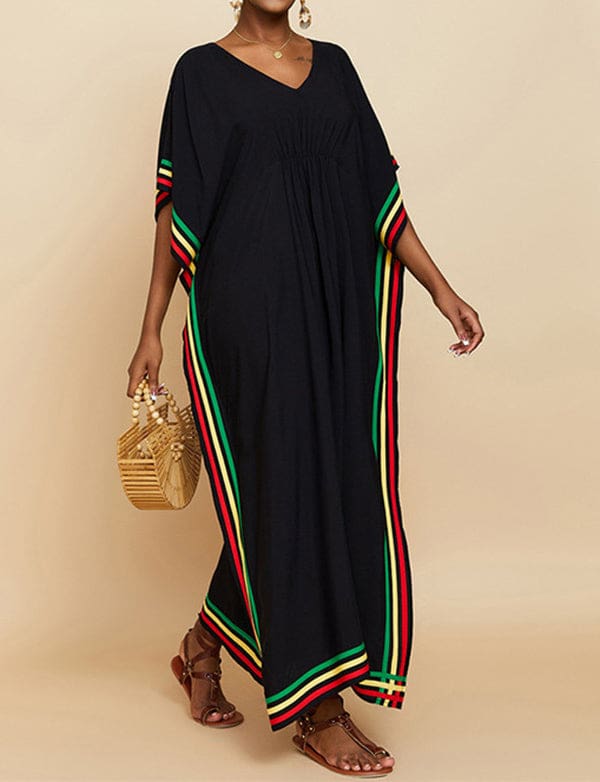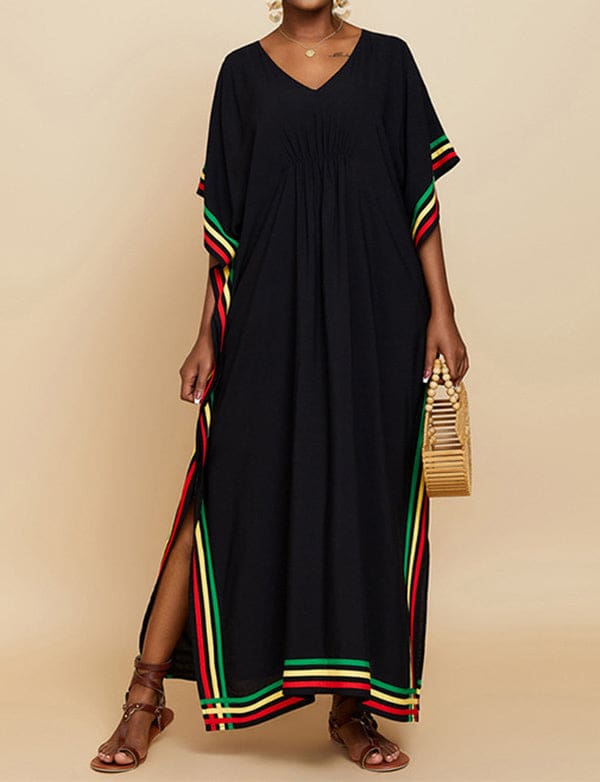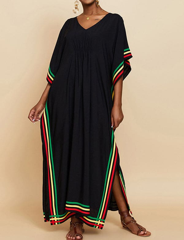 Abaya musulmane robe à manches longues brodée à col rond avec broderie dorée
