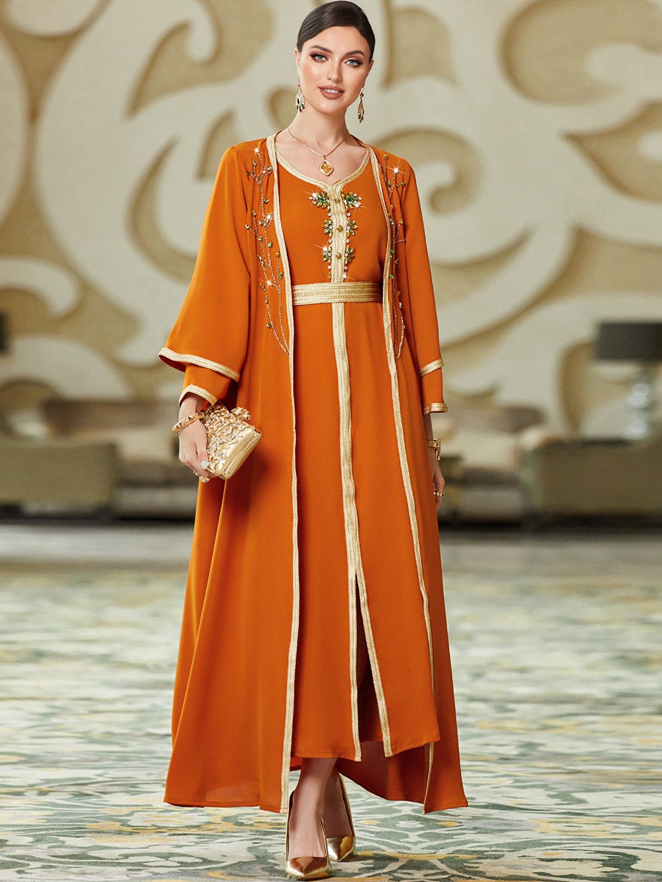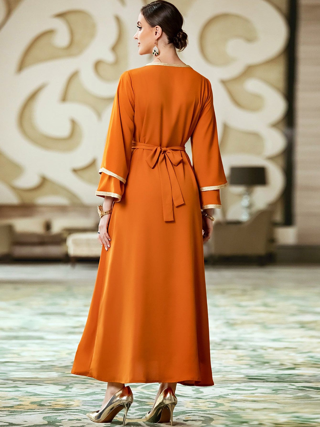 Abaya avec Liseret aux manches et ceinture