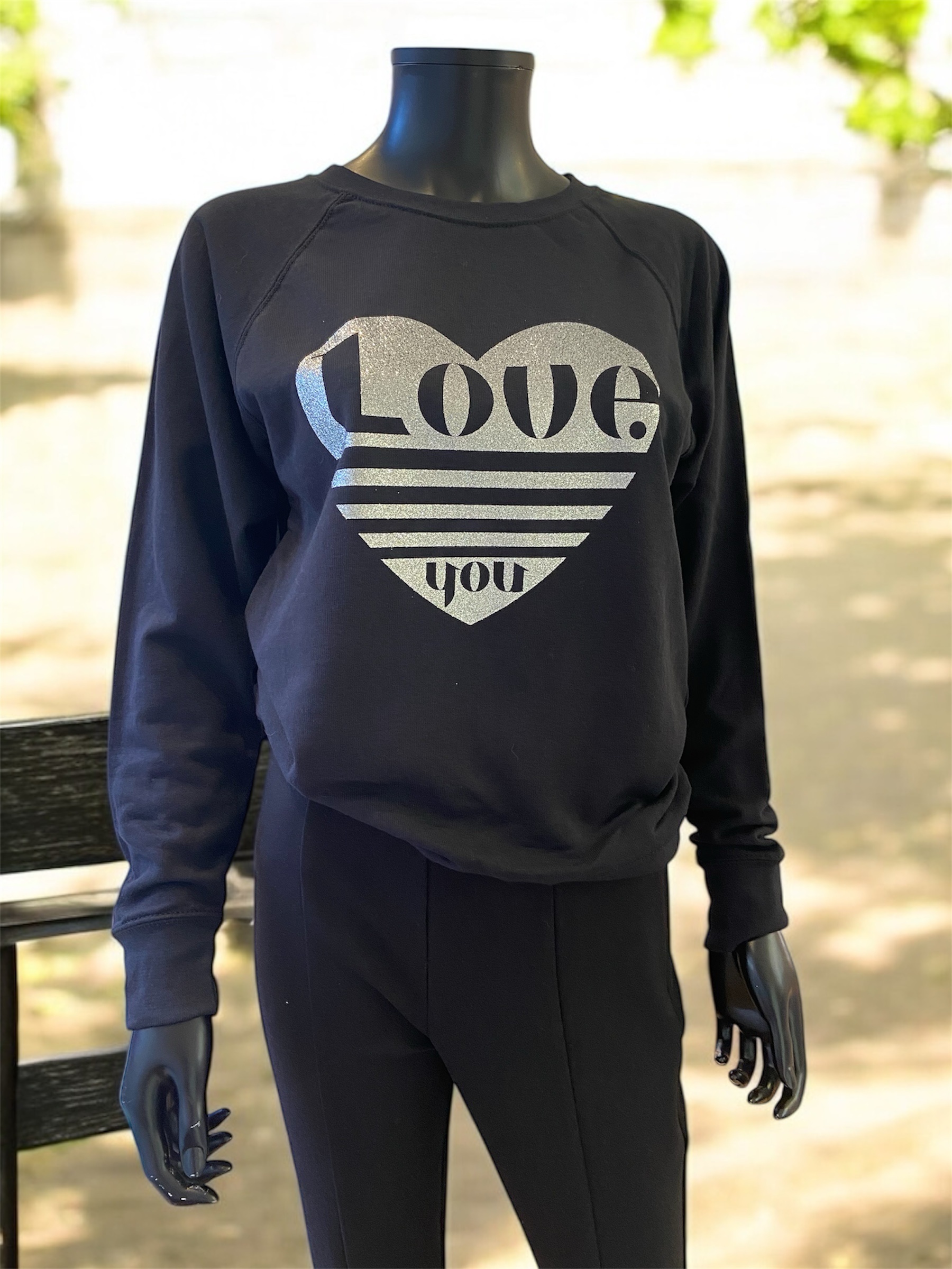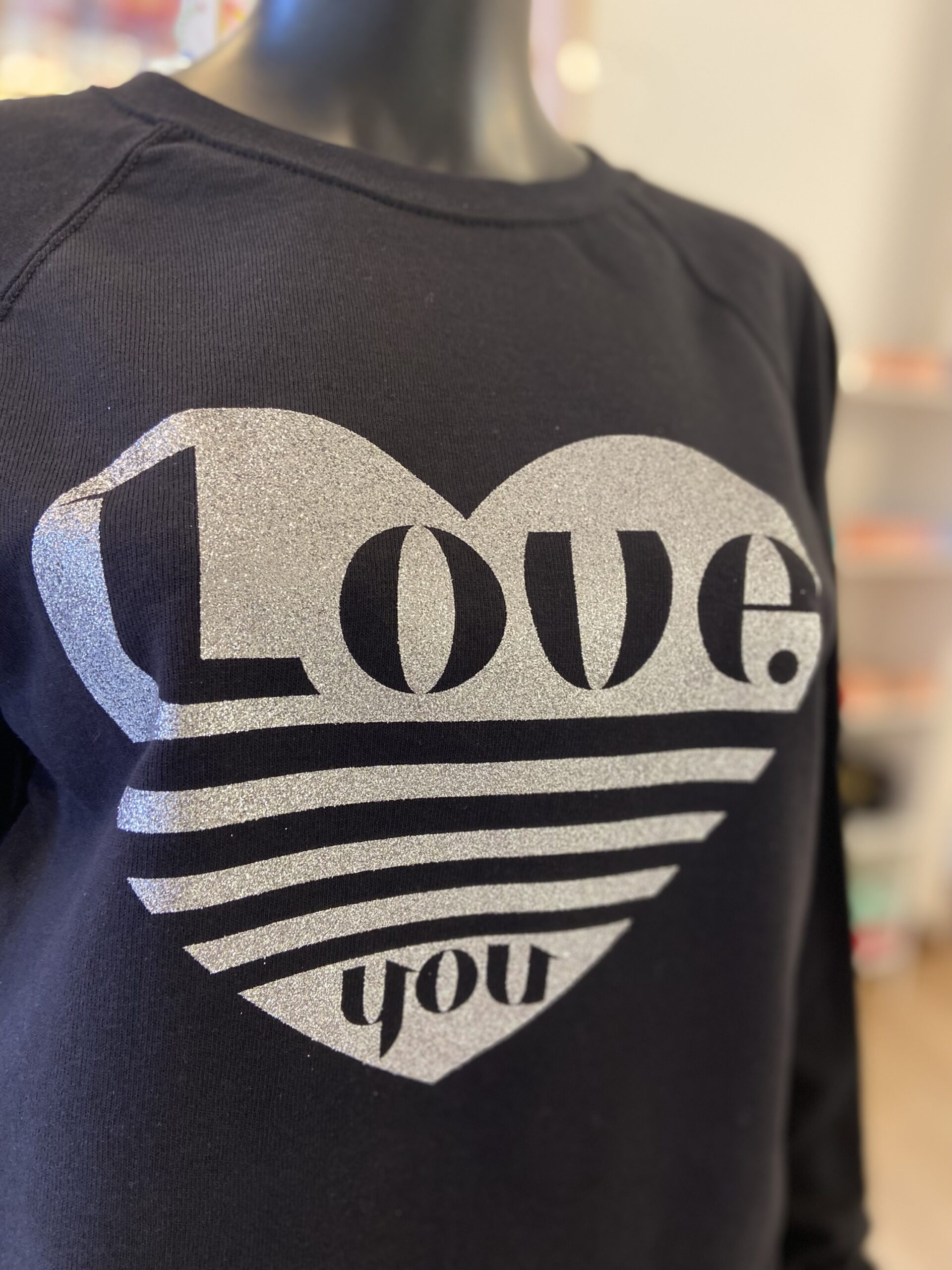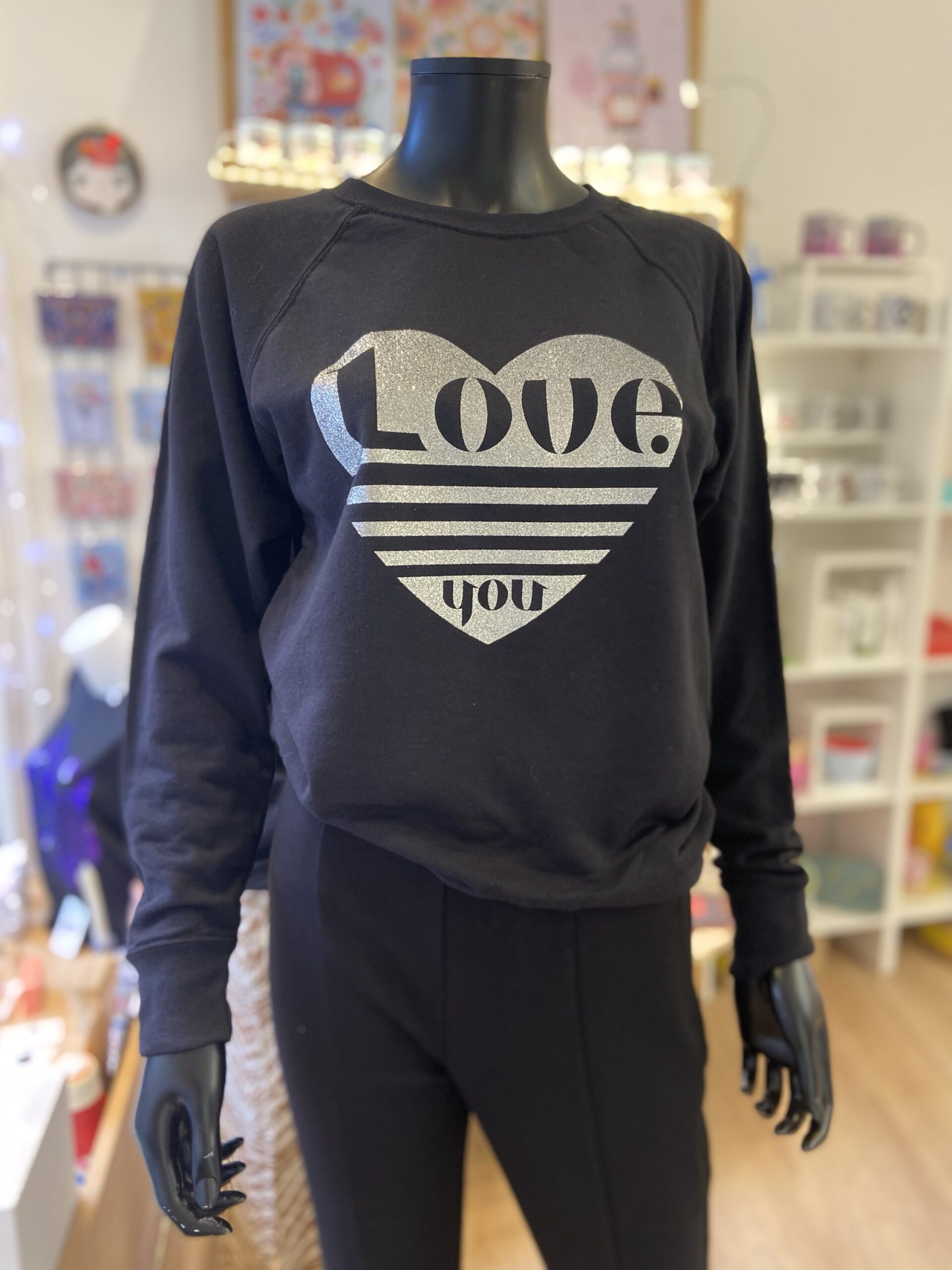 Ajoutez une touche d’amour et de brillance à votre quotidien avec le sweat noir “Love You”. Une création unique, conçue avec passion dans notre atelier.