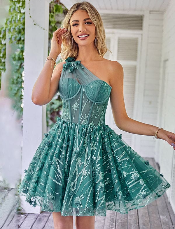 Robe De Bal Asymétrique à Appliques Blush Scintillantes