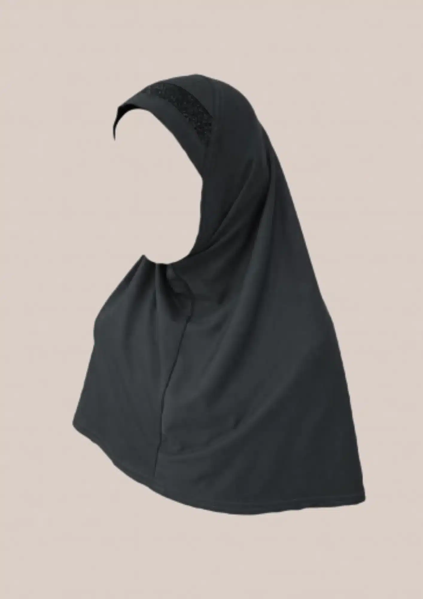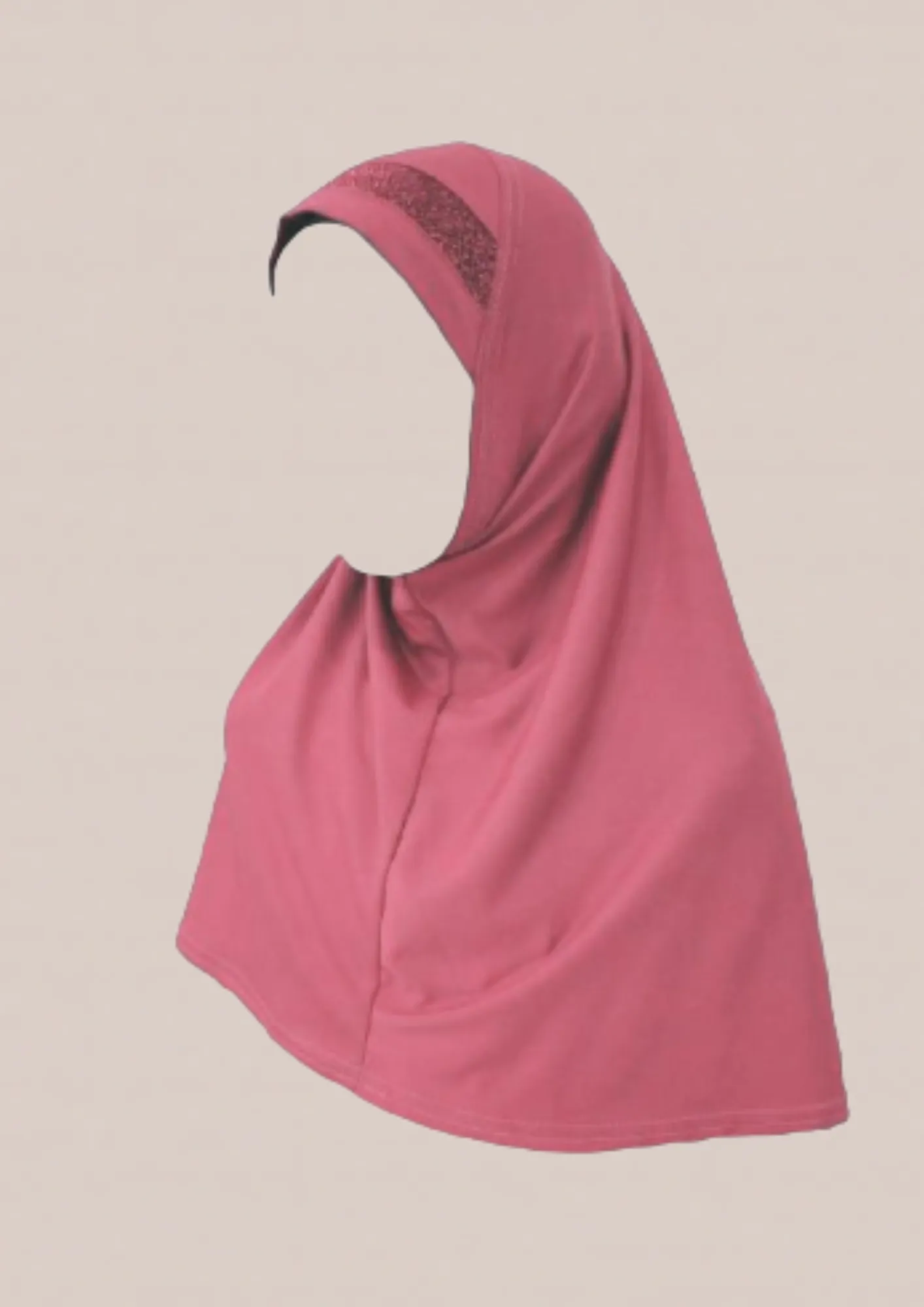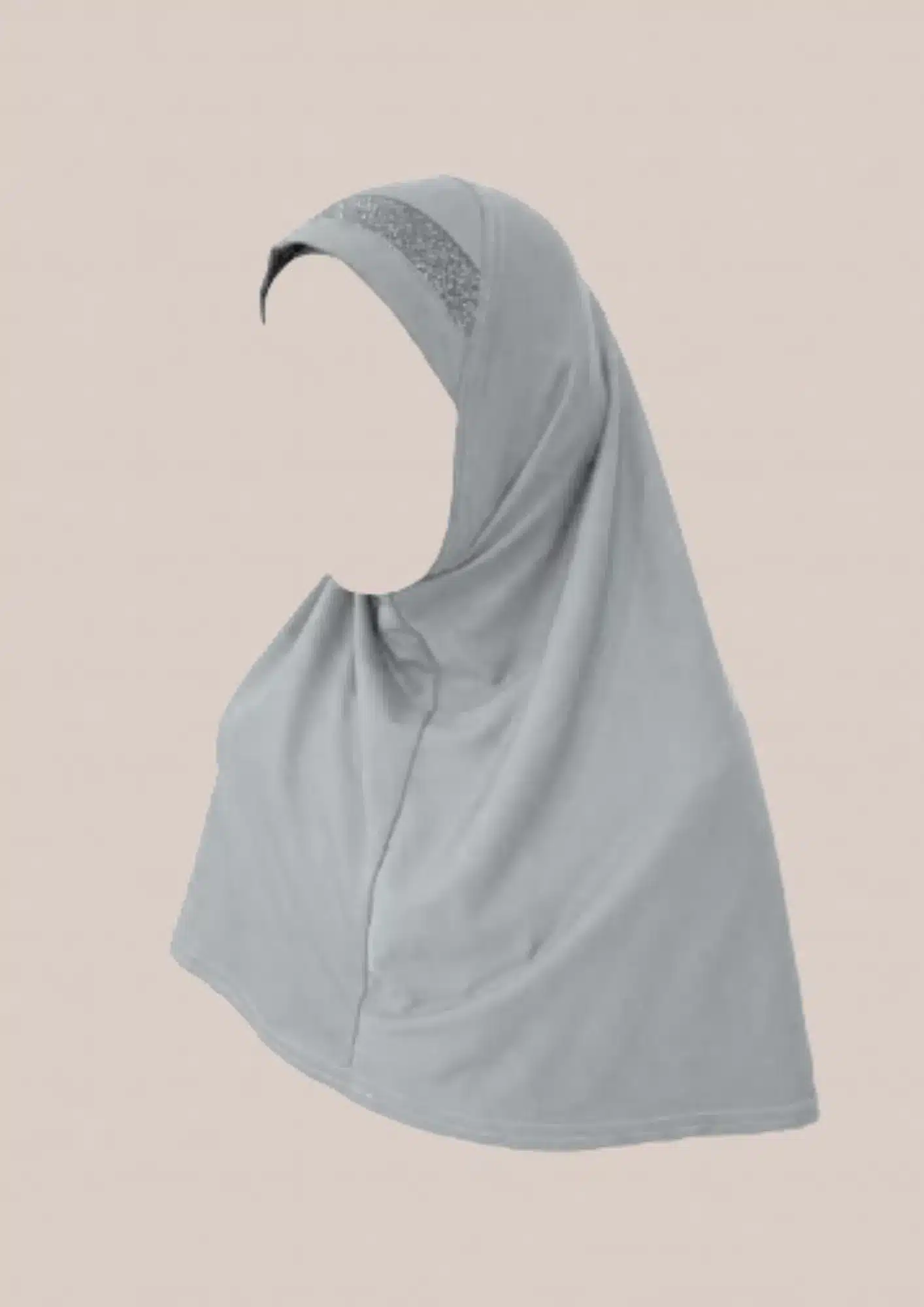 Hijab a enfiler pour petite fille, avec bande pailleté au niveau du bonnet, convient aux filles de 6 à 14 ans.